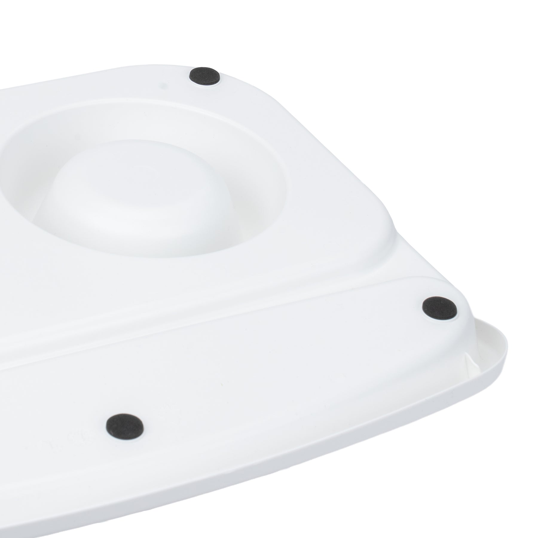 Il vassoio contenitivo è dotato di base d'appoggio per le zampe del vostro amico e presenta alti bordi laterali per contenere la fuoriuscita di acqua o cibo. Fornito completo di due ciotole in plastica (Party 4 da 0.3 litri di capacità), questo vassoio in plastica per cani e gatti assicura grande praticità in quanto potrete fornire nello stesso momento cibo secco o umido e acqua.