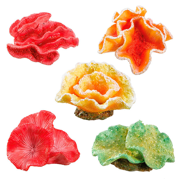 Perfetto per dare un tocco di allegria alla vasca dei pesci! BLU 9179 include colorati e originali arredi in resina per decorare il vostro acquario, tra i quali potrete trovare stelle marine e coralli, alcuni appoggiati su rocce, altri con base di appoggio.