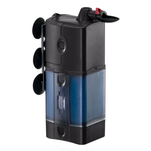Il filtro interno per acquari Blumodular è disponibile in tre diverse misure per un volume del materiale filtrante fino ad un massimo di un litro. Tutti i modelli sono adatti per acquari d'acqua dolce e marina, completi di spugne meccaniche Blumec e spugne al carbone attivo Bluclear. Dotato di sistema di fissaggio universale, Blumodular è infine ideale su qualsiasi tipo di vasca. Se possedete ad esempio un acquario Cayman o Dubai di Hydor, è possibile collegarlo direttamente alla cornice senza senza utilizzare le ventose.