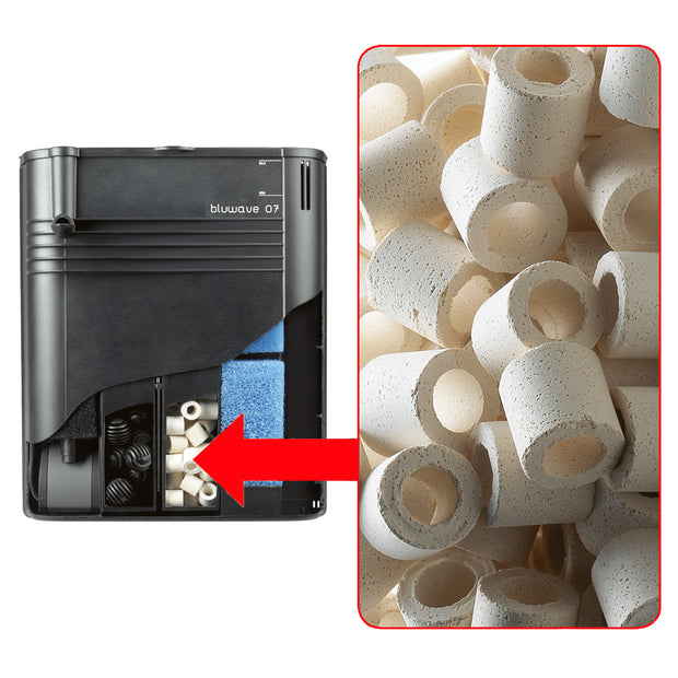 Blurings di Hydor sono dei cannolicchi in ceramica ad elevata micro-porosità per assicurare un'efficace filtraggio biologico dell'acqua: promuovono infatti lo sviluppo di una corretta flora batterica filtrante atta ad eliminare le sostanze inquinanti disciolte.