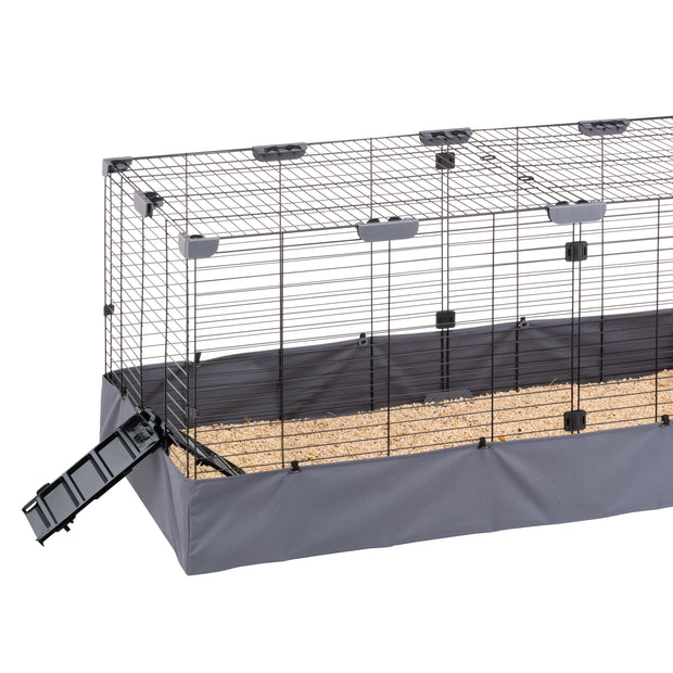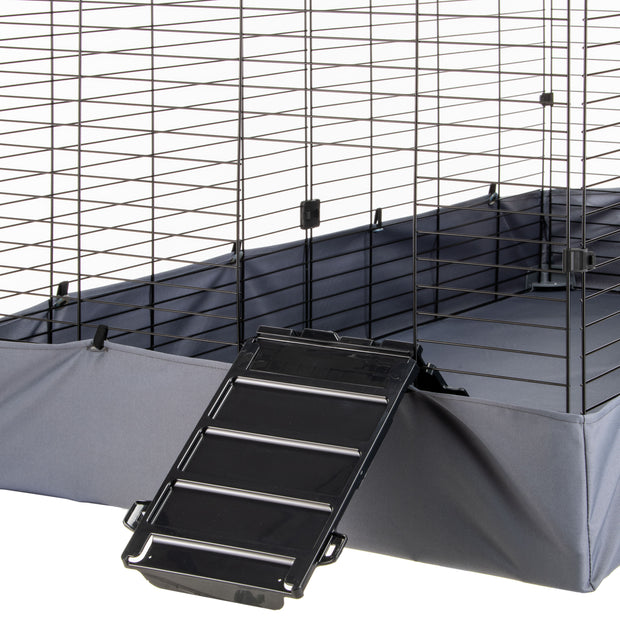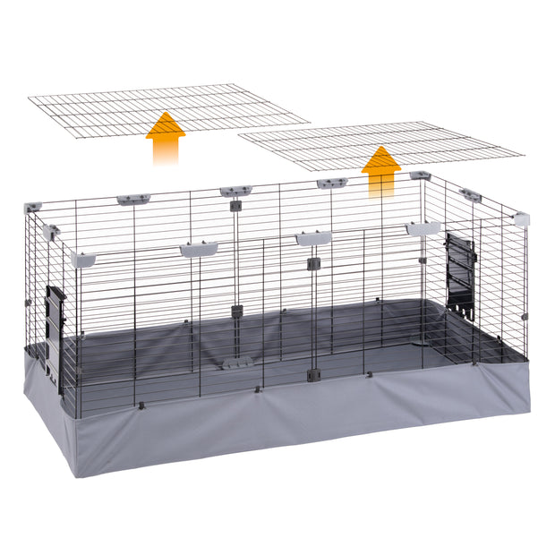 La robusta struttura in rete metallica assicura la massima protezione per i vostri animali, mentre il fondo in tessuto impermeabile e resistente all’abrasione è progettato per contenere efficacemente deiezioni, sporco e lettiera. Il fondo è facilmente lavabile in lavatrice, garantendo un'igiene impeccabile e una pulizia rapida e semplice. Il telo versatile può essere utilizzato anche come protezione solare in esterno, fissandosi rapidamente e in modo sicuro grazie ai pratici bottoni.
