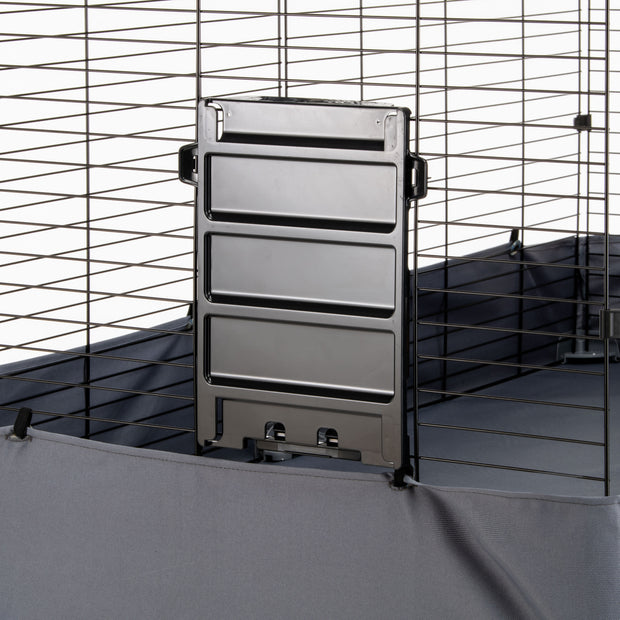 Bunny Hub è progettato per essere facile da montare, senza necessità di strumenti particolari. Quando non in uso, l'habitat occupa poco spazio, rendendolo estremamente pratico da riporre. La gabbia è completa di accessori, incluse due porticine in plastica che fungono anche da scaletta per consentire al coniglio di entrare e uscire agevolmente. Inoltre, una porticina extra con cerniere può essere utilizzata per creare un pratico ponte.