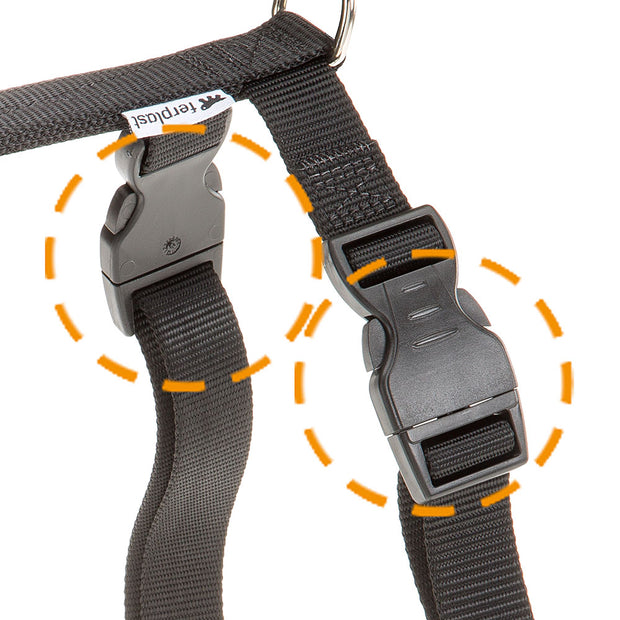 Realizzata interamente in nylon, Champion P è una pettorina per cani robusta e durevole, in grado di resistere nel tempo alle sollecitazioni ricevute dall'animale. Dotata di comodo anello per poter agganciare il guinzaglio, veste particolarmente bene perché è regolabile in ben tre punti in modo da adattarsi meglio al corpo del vostro fedele amico. Una volta effettuate le semplici regolazioni iniziali, sarà facile da usare nell'uso quotidiano, dal momento che per farla indossare sarà sufficiente agganciare la clip in plastica.