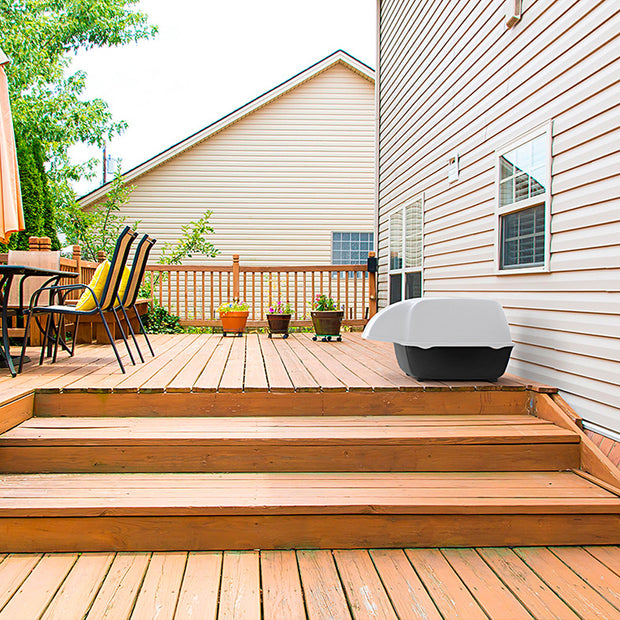 L’ultimo modello di toilette per gatti realizzato da Ferplast, Cosmic Outdoor, ha un look davvero futuristico! Questa versione da esterno è assolutamente a prova d’acqua e può essere quindi lasciata all’aperto senza problemi: perfetta in terrazza o nel portico di casa. La toilette per gatti, realizzata in robusta resina termoplastica, presenta un accesso del tutto particolare che facilita l'entrata del gatto: un canale d'entrata consente al micio di infilarsi facilmente all'interno. Si tratta di una soluzione ideale per chi ha in casa un cane di piccola taglia e non vuole che entri nella toilette del micio: data la particolare forma, infatti, il gatto può accedere senza problemi, mentre il cane ha molte difficoltà.