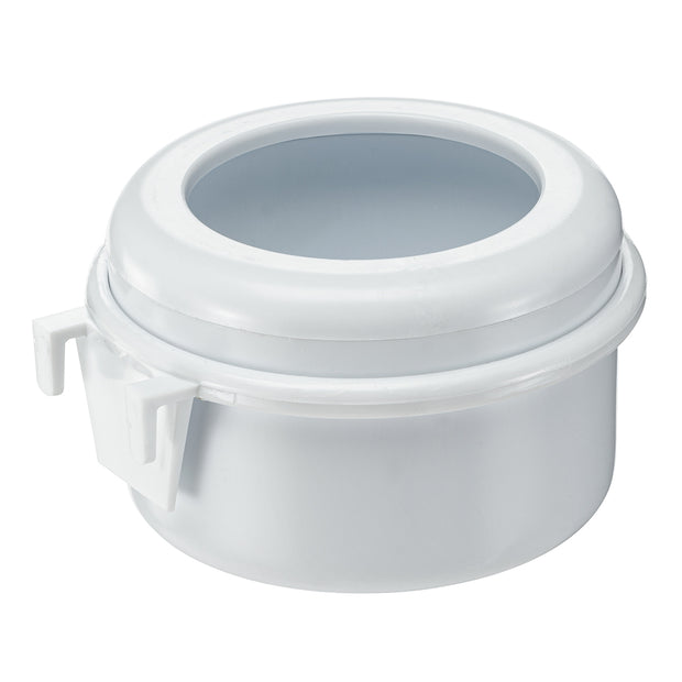 Le mangiatoie Crema per uccelli, canarini e piccoli esotici, hanno una forma rotonda e sono ideali per contenere semi o miscele di cibo. Realizzate in robusta plastica, si puliscono con facilità e sono semplici da assemblare, si compongono di una ciotola e di un pratico sistema di fissaggio alla gabbia. Questo modello è indicato anche come ciotola per cocorite, particolarmente profondo e dotato di bordo contenitivo che consente agli uccelli domestici di mangiare evitando di rovesciare il mangime contenuto all'interno.