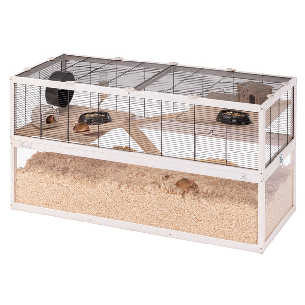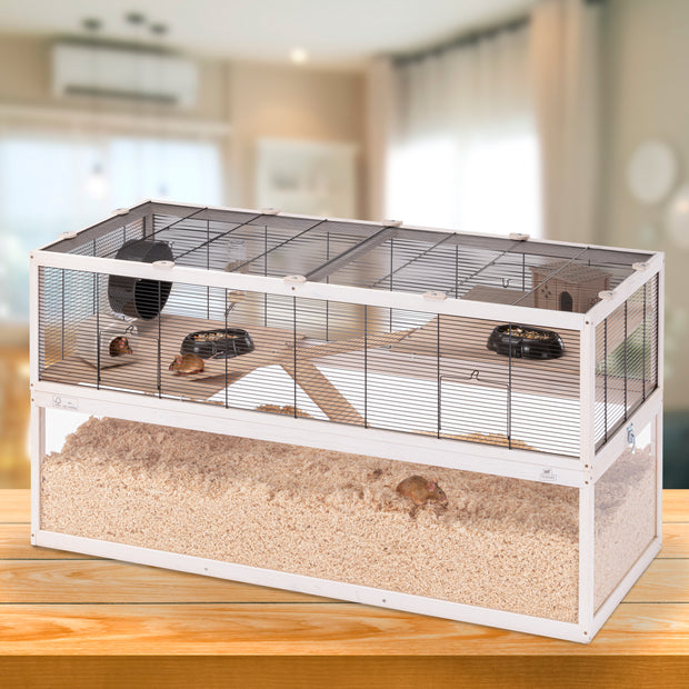 La base trasparente in plastica di ogni gabbia consente una visione chiara del vostro pet, facilitando l'osservazione dei momenti di gioco e esplorazione del roditore.