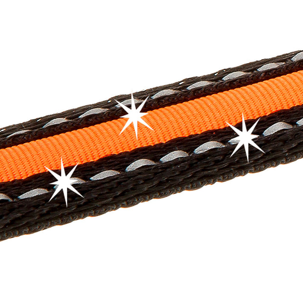 Guinzaglio per cani in nylon, riflettente e lampeggiante. Luce Led. Ricarica solare e USB.