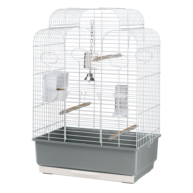 Gala è una gabbia per calopsiti ideale anche per parrocchetti. La particolare forma del tetto arrotondato assicura grande comfort, spazio e libertà di movimento ai vostri amici pennuti. Gala è dotata di cassetto indispensabile per raccogliere sporco ed escrementi, facilmente estraibile per veloce pulizia; l'alto fondo in plastica rigida di cui è dotata impedisce al tempo stesso che mangime e sporco possano fuoriuscire dalla gabbia.