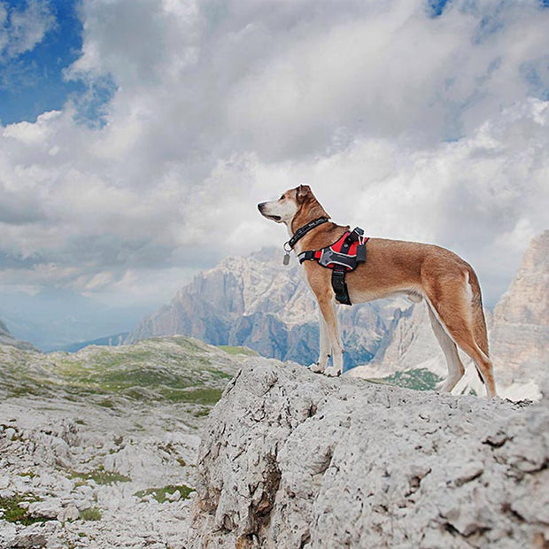 Un comodo passante elastico posto sul fianco consente di inserire oggetti utili, come ad esempio una torcia. Ecco dunque l'accessorio perfetto per le passeggiate in montagna, per le attività sportive come trekking e jogging in compagnia del vostro amico più fedele!