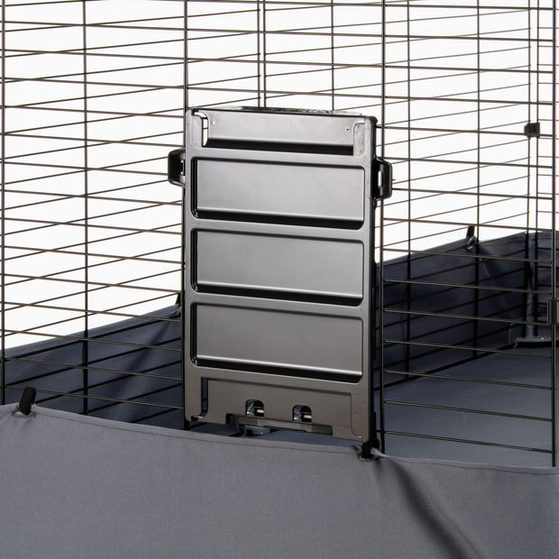 Il recinto per cavie Hub è progettato per essere facile da montare, senza necessità di strumenti particolari. Quando non in uso, l'habitat occupa poco spazio, rendendolo estremamente pratico da riporre. La gabbia è completa di accessori, incluse due porticine in plastica che fungono anche da scaletta per consentire al porcellino d'India di entrare e uscire agevolmente. Inoltre, una porticina extra con cerniere può essere utilizzata per creare un pratico ponte.