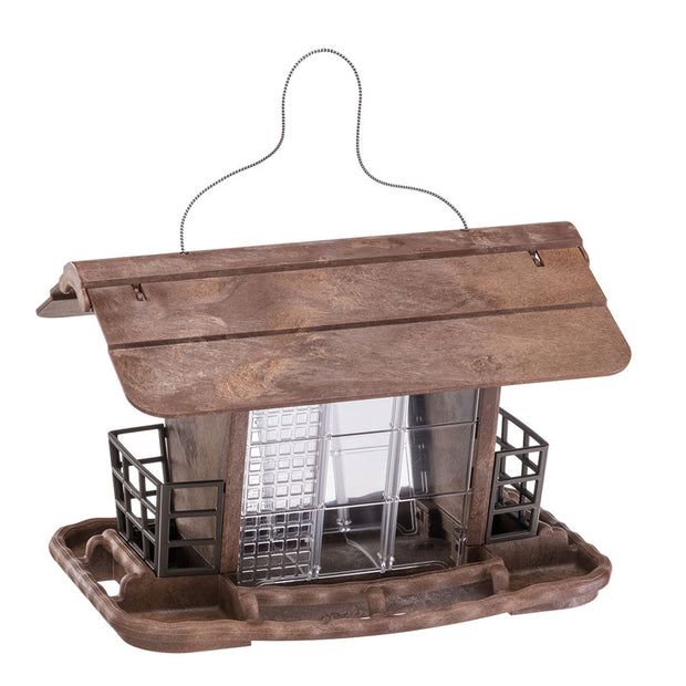 La mangiatoia da esterno è robusta, costruita con materiali resistenti alle intemperie, atossici e riciclabili. Facile da pulire, è inattaccabile dai parassiti a garanzia di massima igiene. Completa di posatoio e di cordino per il fissaggio agli alberi del vostro giardino.