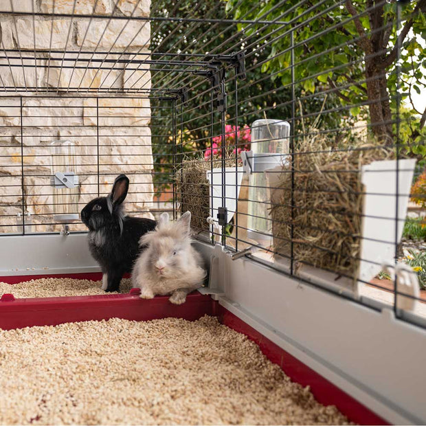 Il modello Krolik 160 qui presentato assicura al vostro coniglio uno spazio ampio e confortevole, corredato di tutti i comfort. All'interno, troverete infatti una casetta in plastica con ciotola, mangiatoia per il fieno e beverino. Sul lato della gabbia, troverete inoltre una comoda scaletta che consente all'animale di uscire e entrare autonomamente e muoversi liberamente in casa. L'habitat è ideale per ospitare anche più conigli insieme, completo di estensione di 40 cm di lunghezza separata dalla gabbia principale da una griglia estraibile. Questo modulo è ideale per permettere ai coniglietti di costruire il proprio nido in una zona appartata lasciando loro tutta la tranquillità di cui hanno bisogno.
