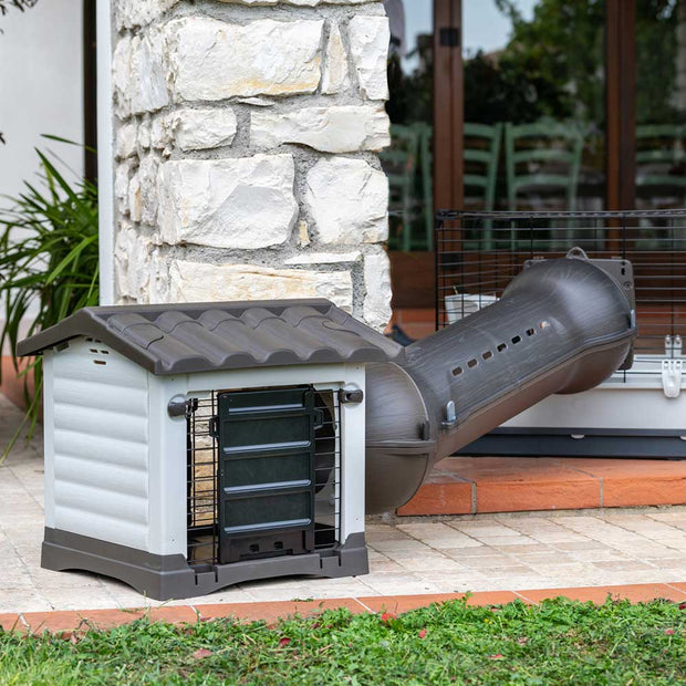 La casetta per conigli Metrò Station, indicata anche per porcellini d'India e furetti, è predisposta per essere collegata ai tunnel per conigli e piccoli animali Metrò di Ferplast, un particolare sistema di connessioni che consente di creare tantissimi percorsi per i vostri amici incentivando l'esercizio e i momenti di svago. E’ possibile infatti collegare tra loro diversi habitat, in base allo spazio che avete a disposizione, e creare così infiniti percorsi per massimo divertimento dell'animale.