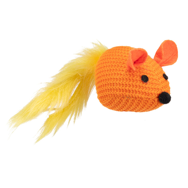 Ha la divertente forma di un topolino questo gioco per gatti in poliestere con applicazioni di soffici piume. Utile per far trascorrere al vostro micio tanti momenti felici, è realizzato con materiali di prima scelta a garanzia della massima sicurezza per l'animale.