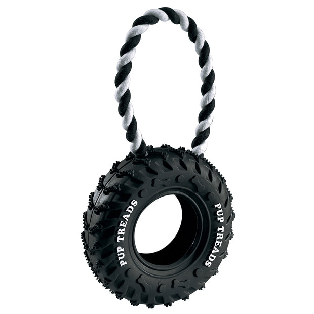 Gioco per cani in cotone e gomma dura ad alta resistenza, è un passatempo particolarmente indicato per animali mordaci. Utile per allenare la velocità e i riflessi del vostro fedele amico, è disponibile in due diverse misure, PA 6430 Small e PA 6432 Medium, per soddisfare cani di tutte le taglie. Il gioco è composto da un robusto cordoncino in cotone intrecciato, che potrete tenere saldamente mentre il cane azzanna il solido pneumatico in gomma. Molto maneggevole, infatti, questo antistress si afferra facilmente, così voi potrete giocare a \tira e molla\ con il vostro quattrozampe: il divertimento è assicurato! E tutto in completa sicurezza, visto l'esclusivo utilizzo di materiali di qualità.