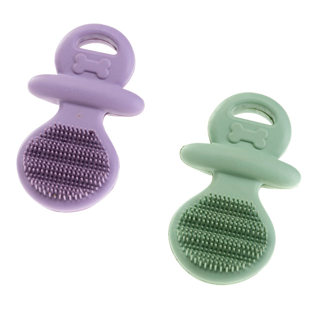La superficie irregolare del gioco fornisce un piacevole effetto massaggiante, stimolando il cane a mordere e favorendo così l'igiene dentale. Questo aiuta a ridurre la formazione di placca e tartaro, mantenendo le gengive sane e pulite. Con una divertente forma di ciuccio, è facile da afferrare e lanciare, perfetto come gioco da riporto.