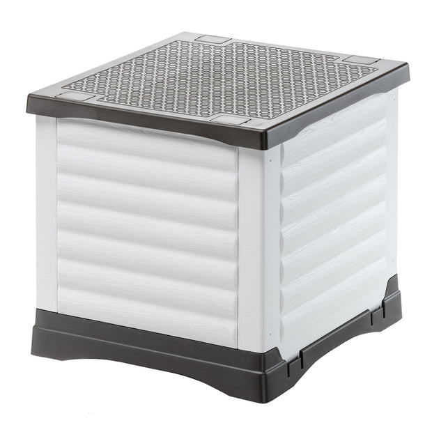 Realizzata in robusta resina termoplastica, materiale resistente agli urti e ai raggi UV, la cuccia da esterno per cani e gatti Petvilla è ideale per tutte le stagioni. Grazie all'ampio volume interno, assicura comfort e spazio al vostro animale. La particolare costruzione del fondo presenta apposite fessure per consentire il defluire dell'acqua verso l'esterno, evita il ristagno di liquidi a garanzia di un ambiente asciutto. Il tetto piatto può essere utilizzato come ripiano o zona relax per il vostro amico.