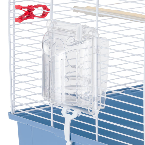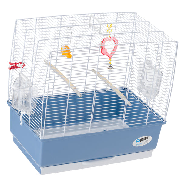 Completa di accessori quali posatoi in plastica ricoperti in gomma antiscivolo, beverino, pinze per il cibo e specchio-gioco. Le speciali mangiatoie girevoli Brava 2, inoltre, realizzate in plastica trasparente, sono davvero pratiche: progettate in modo da poter essere girate di 180°, possono essere riempite facilmente dall’esterno, senza lasciare alcuna apertura da cui l'uccellino possa scappare. Gli utili bordi di cui sono dotate impediscono al cibo di cadere al di fuori della gabbia.