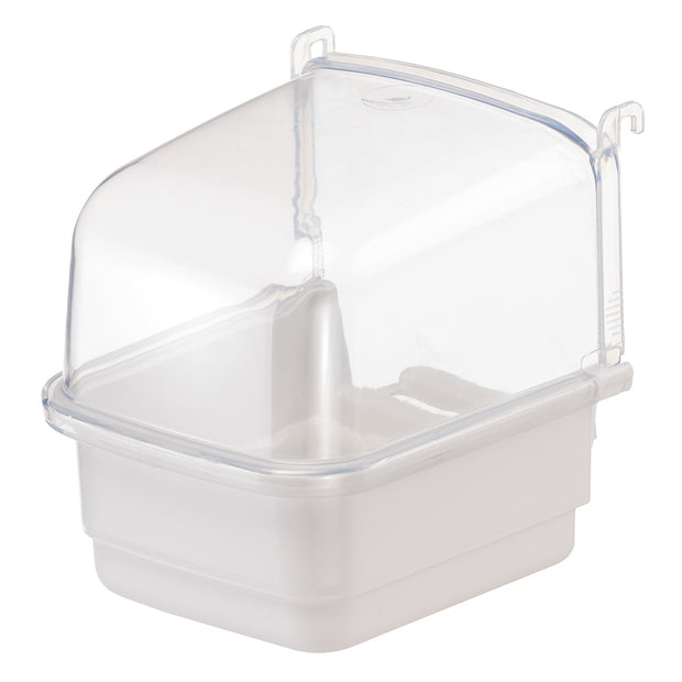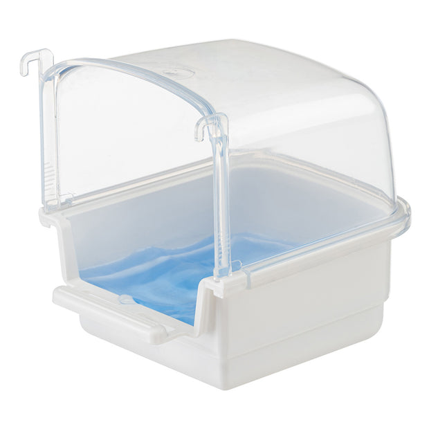 Rio 1 è un bagnetto per canarini, piccoli uccelli ed esotici che consente ai vostri amici di bagnarsi le piume in tutta tranquillità. Realizzato con plastiche atossiche, sicuro per l'animale, presenta un fondo antiscivolo e un pratico posatoio per gli uccellini. E' inoltre dotato di una protezione trasparente utile per evitare la fuoriuscita di schizzi. Il bagnetto si adatta a svariate gabbie per uccelli, può essere montato con facilità all'interno dell'habitat.