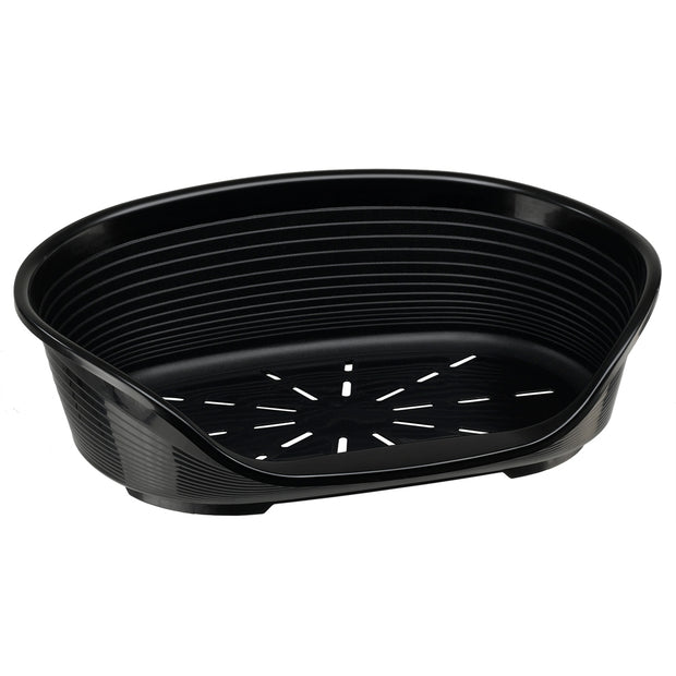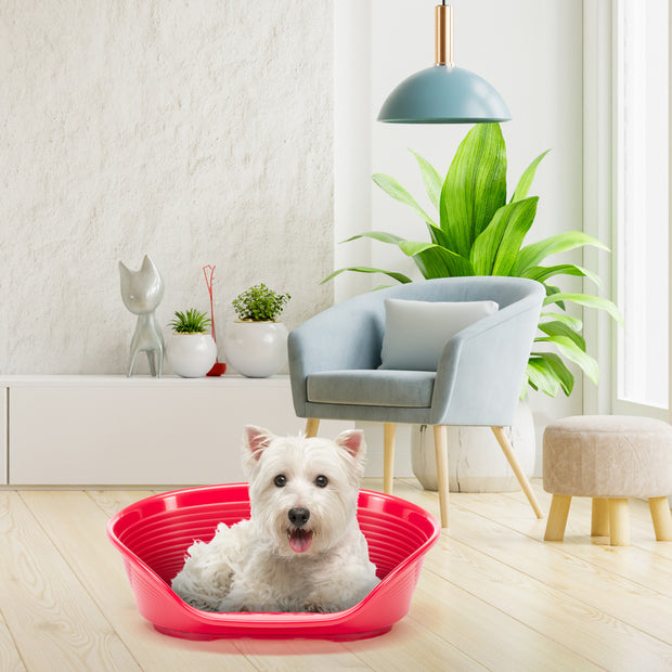 Ecco un' accogliente cuccia da interno per cani e gatti realizzata in solida resina termoplastica! Osservate il design e la forma arrotondata: bordi alti e confortevoli, lato frontale ribassato con comodo poggiamento per l'animale, utili piedini di appoggio con antiscivolo. Il fondo opportunamente perforato è stato studiato per consentire il corretto passaggio dell'aria.