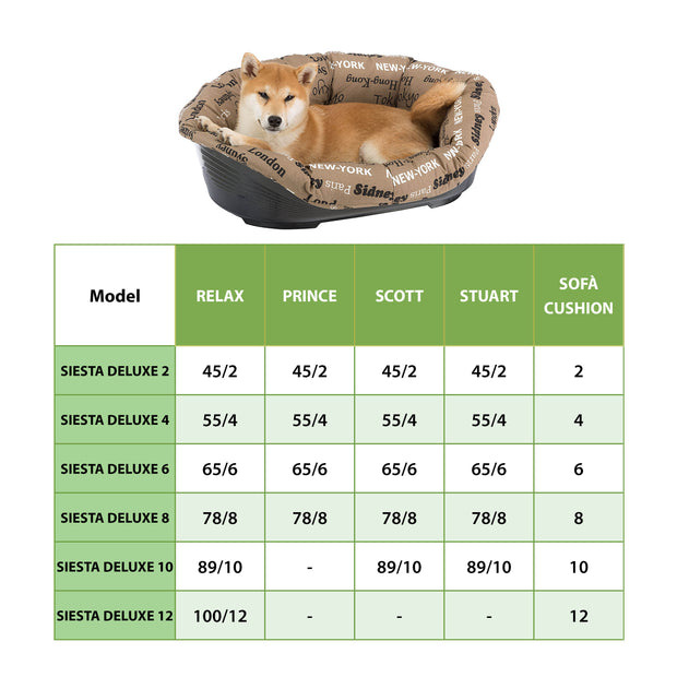 I lettini in plastica Siesta Deluxe sono disponibili in sei formati per cani di tutte le taglie, le misure Siesta Deluxe 2, 4 e 6 sono particolarmente indicate anche per i gatti. Decidete pure con comodo quale tonalità scegliere, la gamma di colori è davvero ampia!