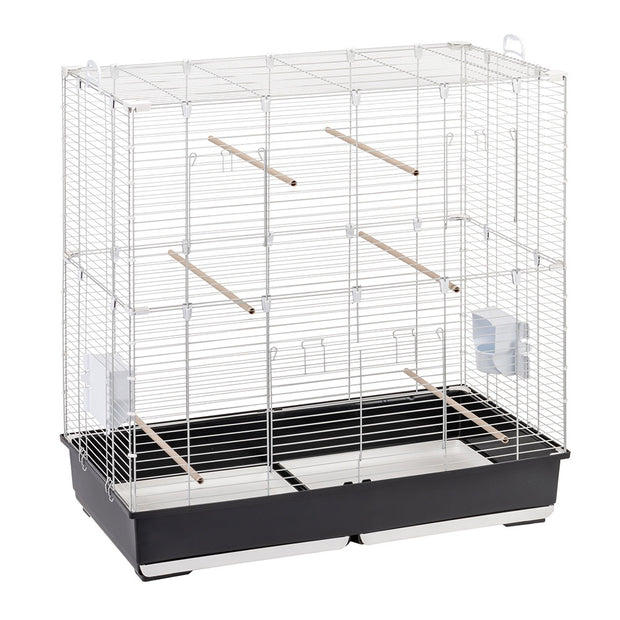 La gabbia per uccelli Sonia Extra Large è dotata di alto fondo in plastica con due pratici cassetti estraibili per facile e veloce pulizia. In aggiunta, il fondo si sgancia completamente dalla struttura superiore, facilitando ulteriormente la manutenzione e assicurando un ambiente sempre pulito e accogliente per gli uccelli.