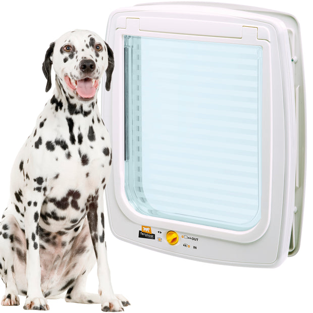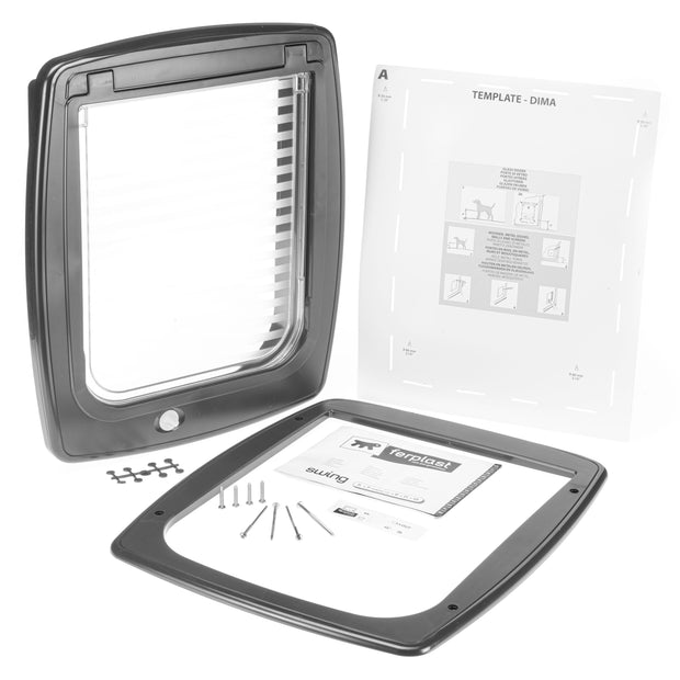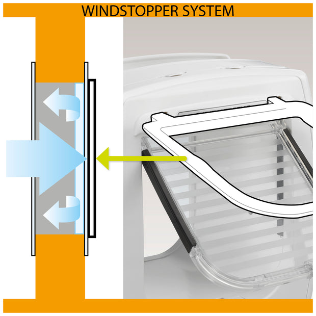 La portina Swing 15, la più grande della gamma, è robusta e affidabile, costruita in plastica, dotata di utile sistema Wind Stopper di protezione contro correnti d'aria e spifferi. Ideale per cani di taglia media e grande, è completa di chiusura a 4 vie che vi consente di regolare l’apertura della portina secondo le vostre necessità: solo entrata, solo uscita, entrata e uscita oppure chiuso. Grazie all'installazione universale può essere montata con facilità su qualsiasi struttura o porta in legno, metallo, vetro e anche su pareti in muratura. La portina per cani Swing 15 viene infatti fornita con il tunnel di 5 cm che permette di adattarla a strutture di spessore maggiorato e può essere rifilato.