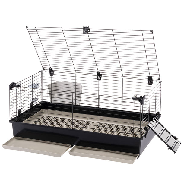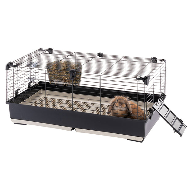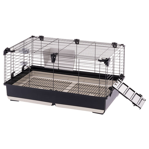 Sul fianco della gabbia, troverete una comoda scaletta (funge anche da chiusura laterale) che consente all'animale di uscire e entrare autonomamente per muoversi liberamente in casa.