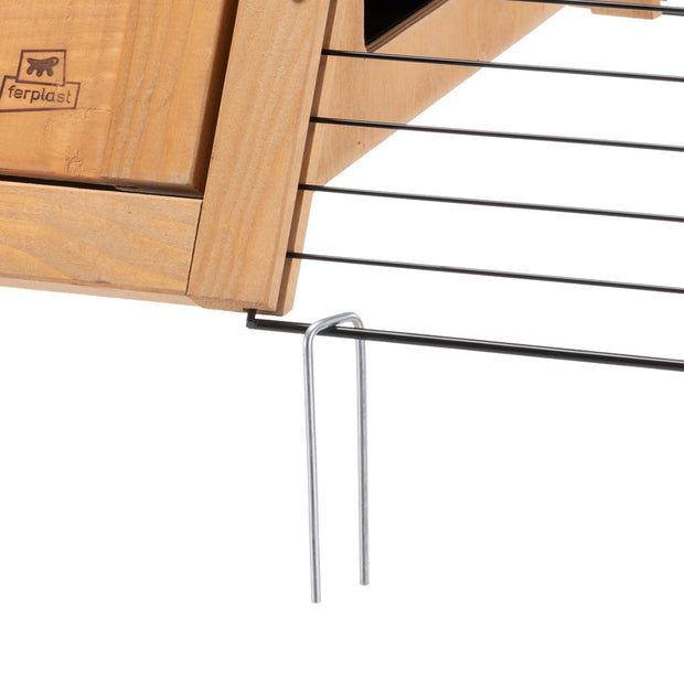 - Casetta coniglio in legno, con ampio sportello frontale apribile dall'esterno e chiusura di sicurezza