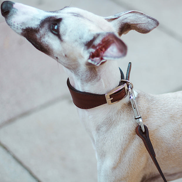 Specifico per la razza Levriero, Vip CW è un elegante collare in cuoio di toro. Confortevole e duraturo, è dotato di un'ampia superficie di appoggio sul collo e di una morbida imbottitura, in modo da adattarsi alla particolare conformazione anatomica di questa razza. Inoltre, il materiale è molto resistente, permettendo di sostenere anche le trazioni più forti da parte dell'animale, mentre la fibbia in metallo cromato rende la chiusura sicura ed efficace. Proposto in un classico marrone scuro, si abbina perfettamente ai guinzagli della stessa linea. Per soddisfare ogni esigenza di taglia, Vip CW è disponibile in tre misure che si differenziano per circonferenza (da 26 a 46 cm) e per larghezza della fettuccia (15, 20 o 25 mm).