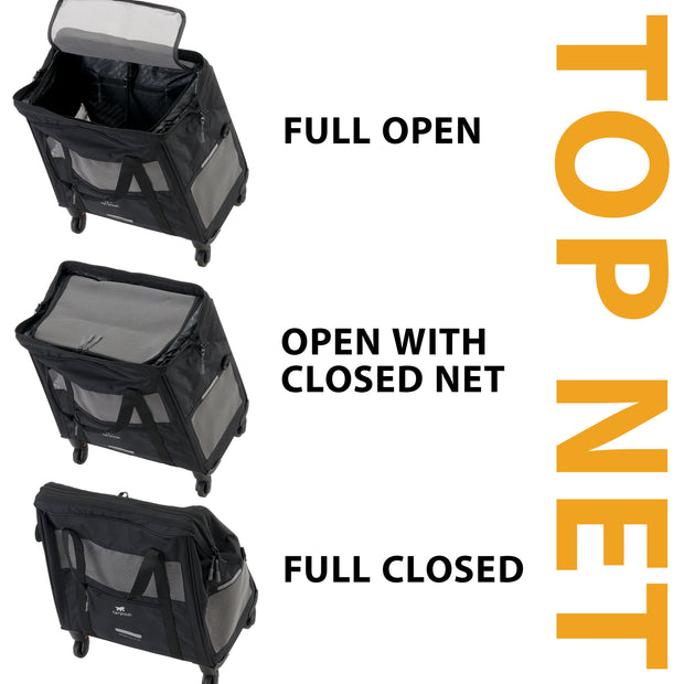 • Rete di sicurezza pieghevole sulla parte superiore, progettata per facilitare l'accesso all'animale e garantire un ambiente ben ventilato