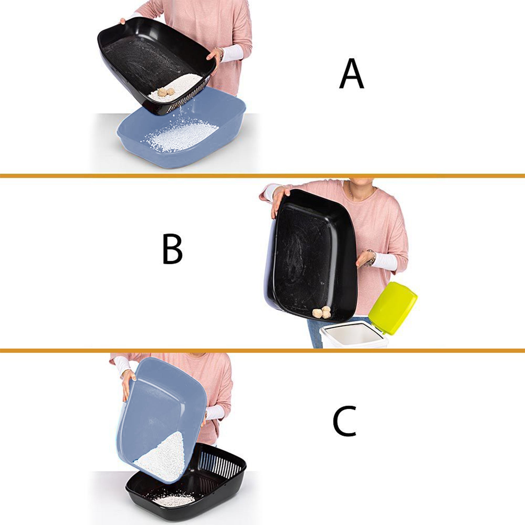 - Evita lo spreco di lettiera, consente di eliminare la lettiera sporca e conservare quella pulita