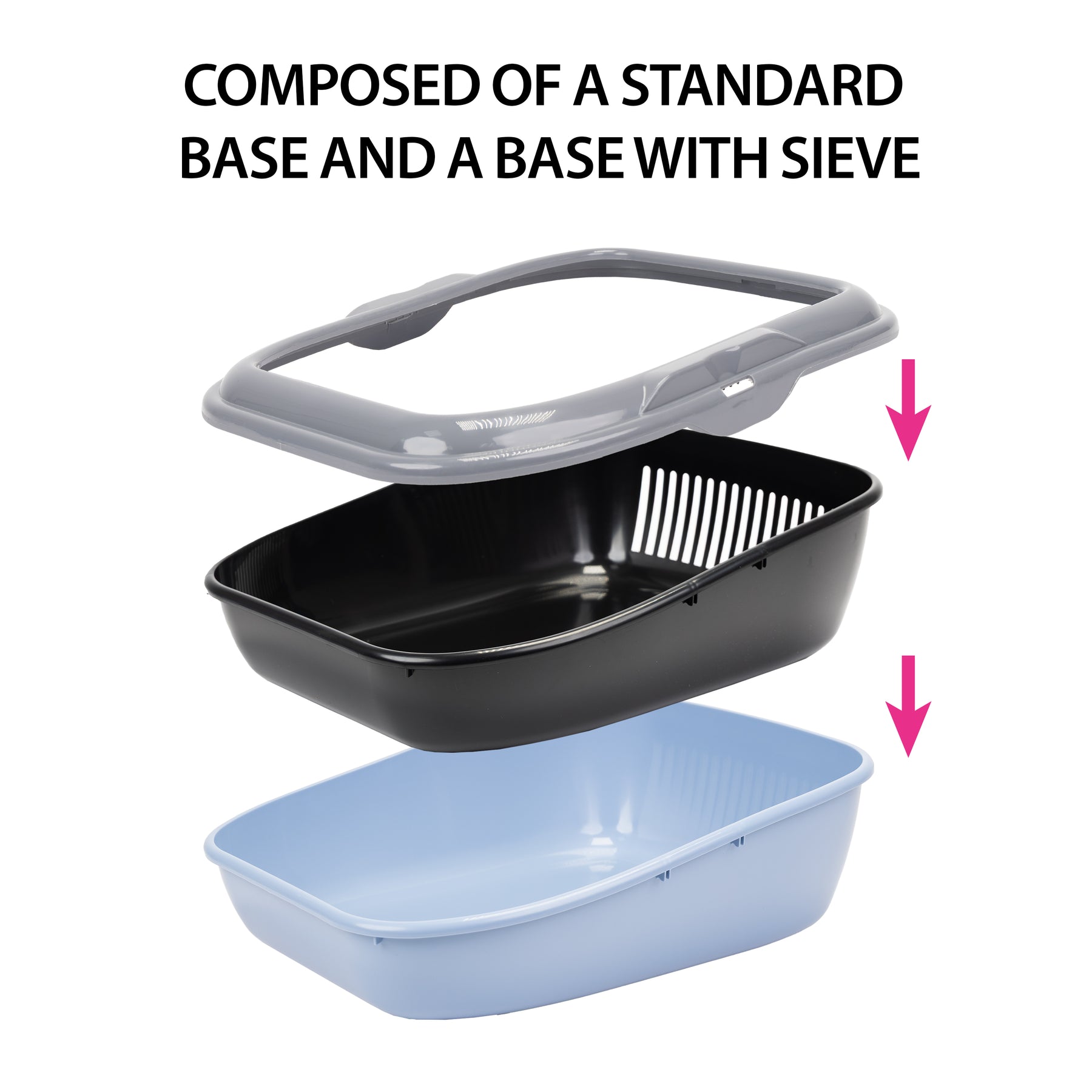 Attenzione: per un corretto funzionamento del setaccio si raccomanda di utilizzare solo lettiere a grana fine come sabbia e non truciolari o lettiere gel di grana grossa.
