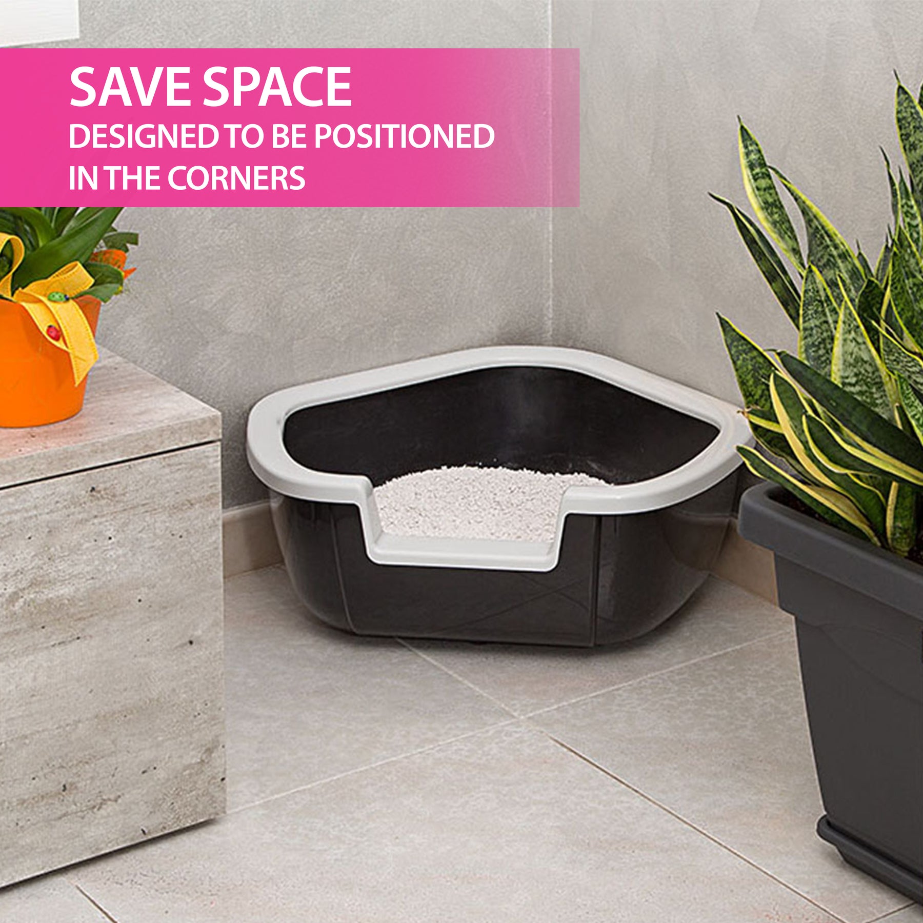 Cassetta igienica aperta ad angolo per gatti
