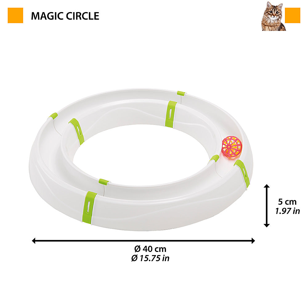 Magic Circle è un gioco componibile che può essere cioè unito agli altri giochi della gamma: potrete così creare un grande parco divertimenti per il vostro amico felino. Addio alla noia!