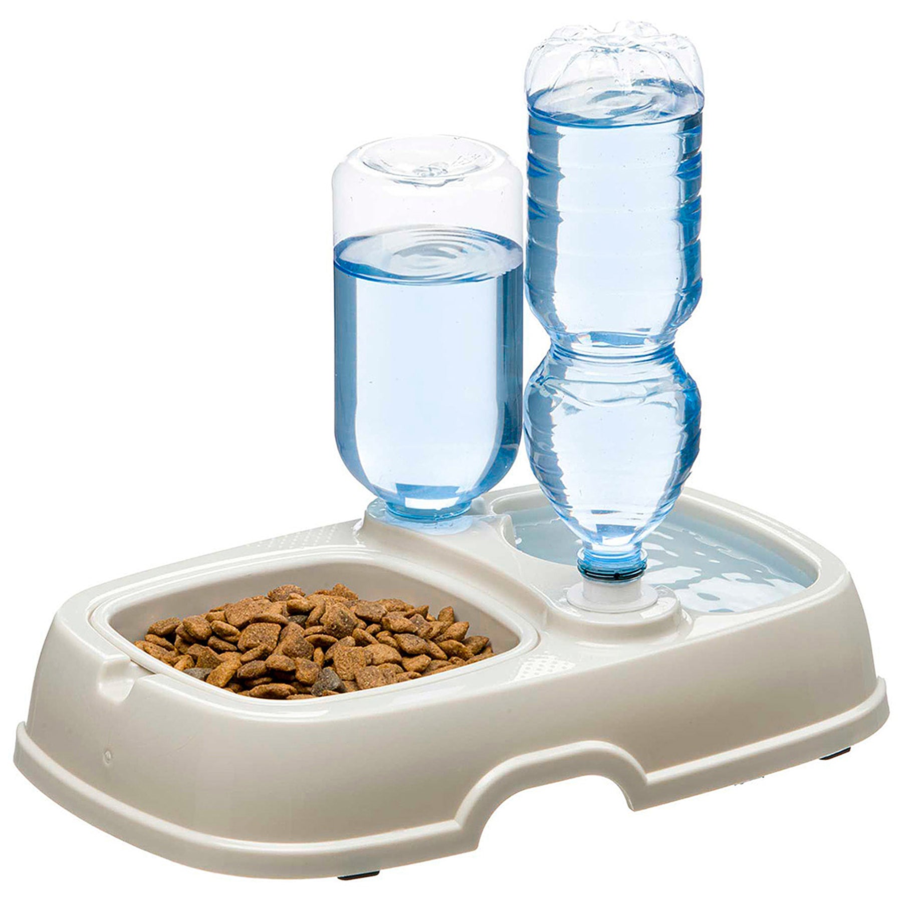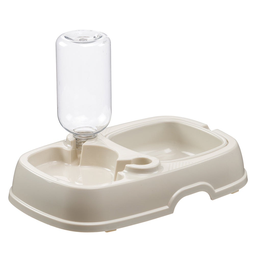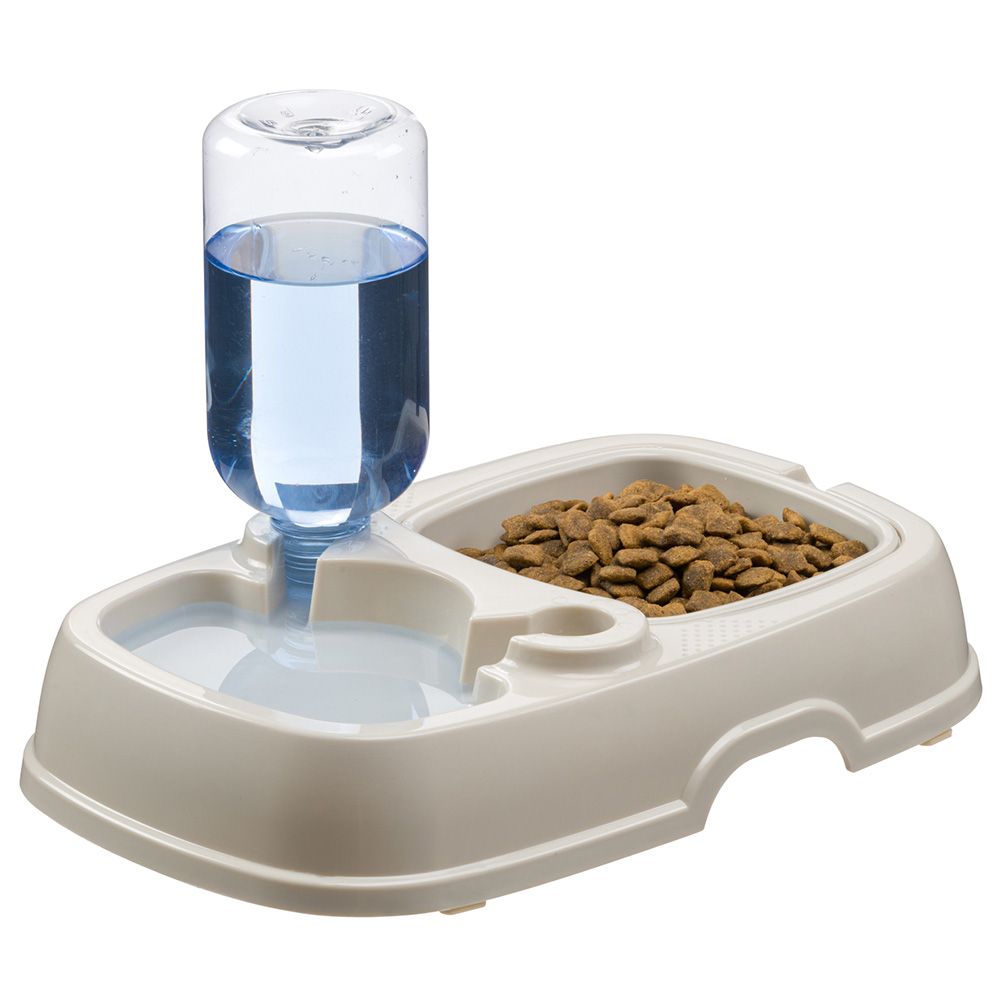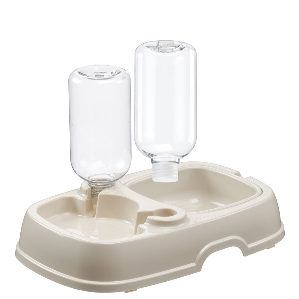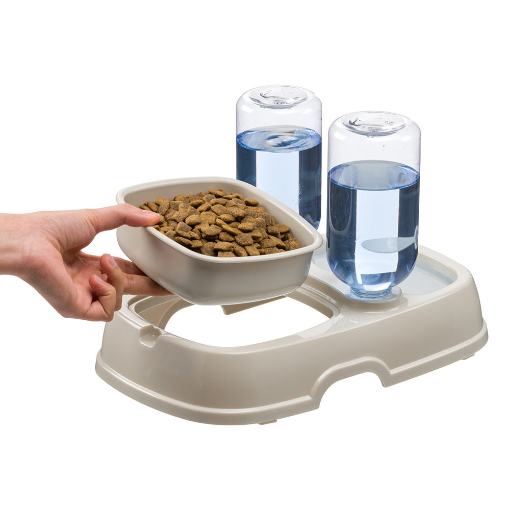 Il distributore di cibo e acqua Tota 2 è la soluzione ideale per assicurare che il tuo cane o gatto sia sempre idratato e ben nutrito. Progettato con un design a doppia ciotola, consente di offrire sia acqua che cibo in un unico pratico dispositivo. Include una bottiglia da 500 ml, con la possibilità di aggiungere un'ulteriore bottiglia grazie ai connettori universali inclusi, compatibili con la maggior parte delle bottiglie in plastica.