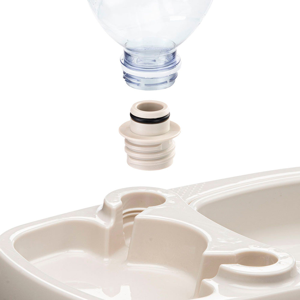 Tota 2 è dotato di due ciotole separate, una per l'acqua e una per il cibo, garantendo un'alimentazione completa e bilanciata per il tuo animale domestico. I connettori inclusi permettono di utilizzare la maggior parte delle bottiglie in plastica, offrendo versatilità e praticità. La ciotola removibile facilita le operazioni di pulizia, mantenendo igiene e ordine. Il fondo antiscivolo previene ribaltamenti e fuoriuscite, garantendo stabilità durante l'uso. La ciotola è dotata di una presa ergonomica per una impugnatura facile e sicura.