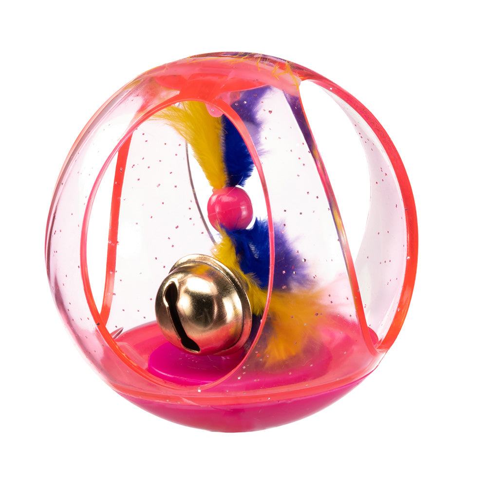 PA 5214 è un gioco per gatti a forma di palla con un animaletto in peluche all'interno. Costruita in resistente plastica trasparente, questa palla-gioco presenta aperture nei lati, che consentono la visione del topolino, incuriosendo ancor di più il gatto, il quale non vedrà l'ora di catturarlo. Essendo realizzata con materiali di qualità che non nuociono agli animali, il vostro micio potrà divertirsi a rincorrere questa palla in tutta sicurezza.