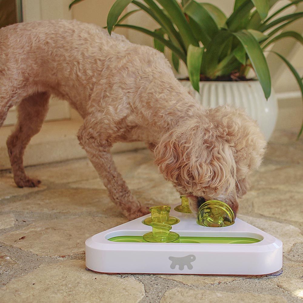 Trea, per esempio, è il gioco di abilità con nascondigli per crocchette che stimola l’istinto di predatore dell’animale, obbligandolo a mangiare più lentamente. Realizzato in robusta plastica, ha il fondo con ventose antiscivolo per assicurarne la massima stabilità. Provate a nascondere invitanti bocconcini all'interno e chiudete gli sportellini scorrevoli: giocando assieme al vostro amico a quattro zampe rafforzerete la speciale relazione che avete con lui!