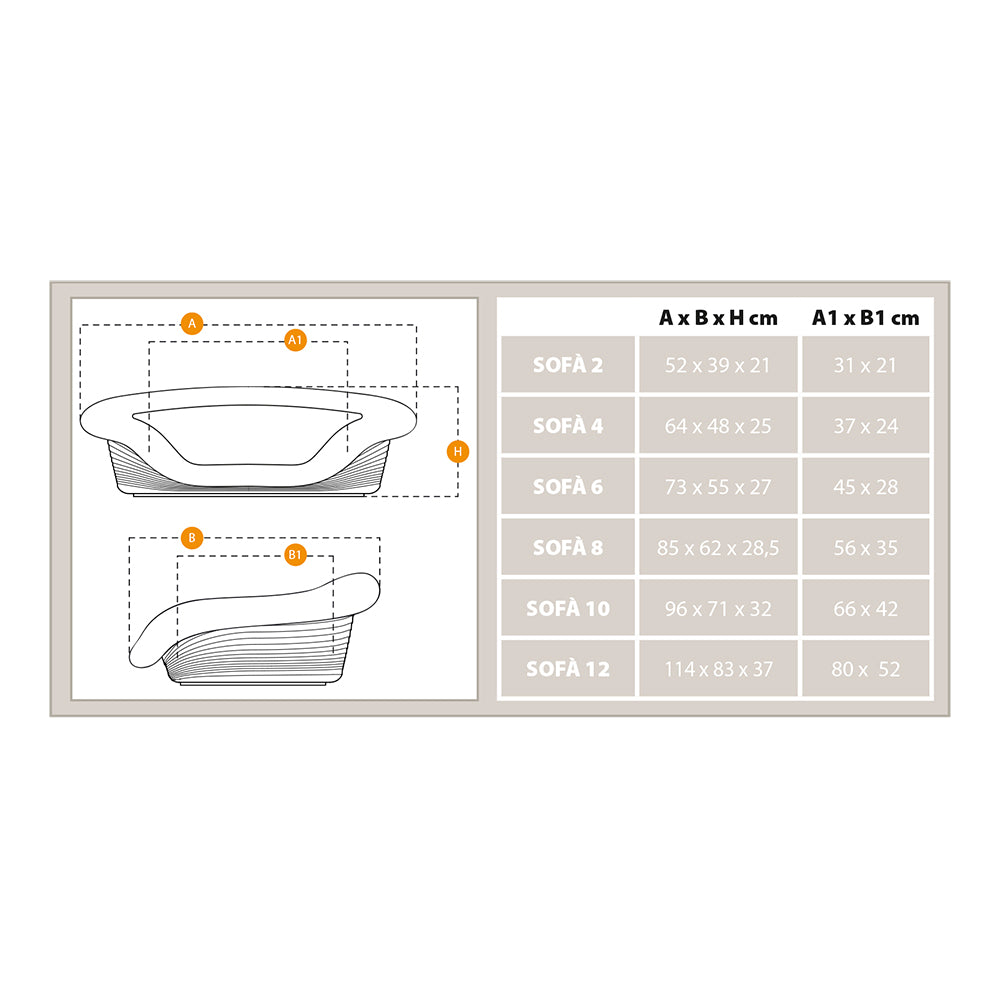 Scegliete tra i colori e le taglie a disposizione il modello ideale per il vostro amico. Per gatti e cani di piccola taglia consigliamo i formati più piccoli come Sofà 4 o 6.
