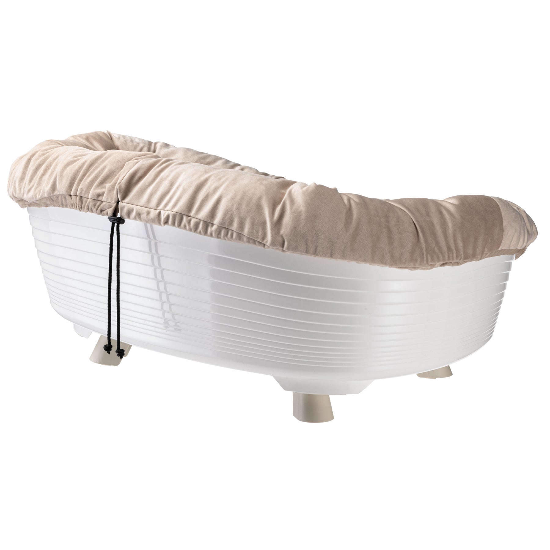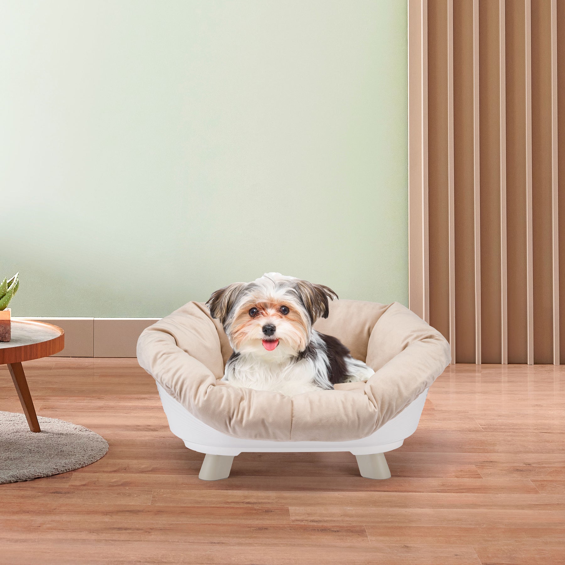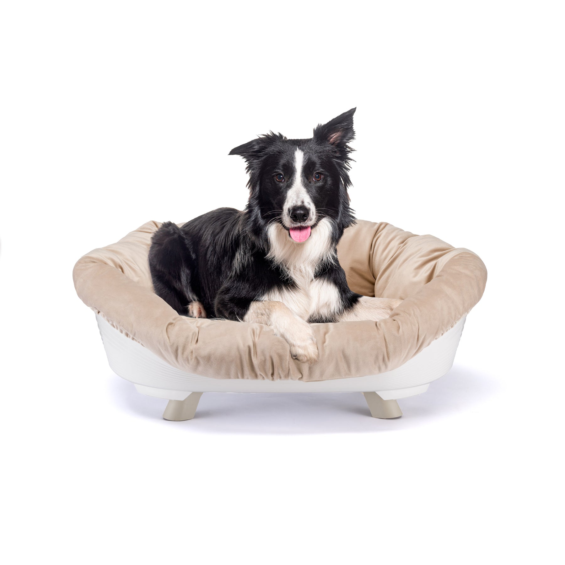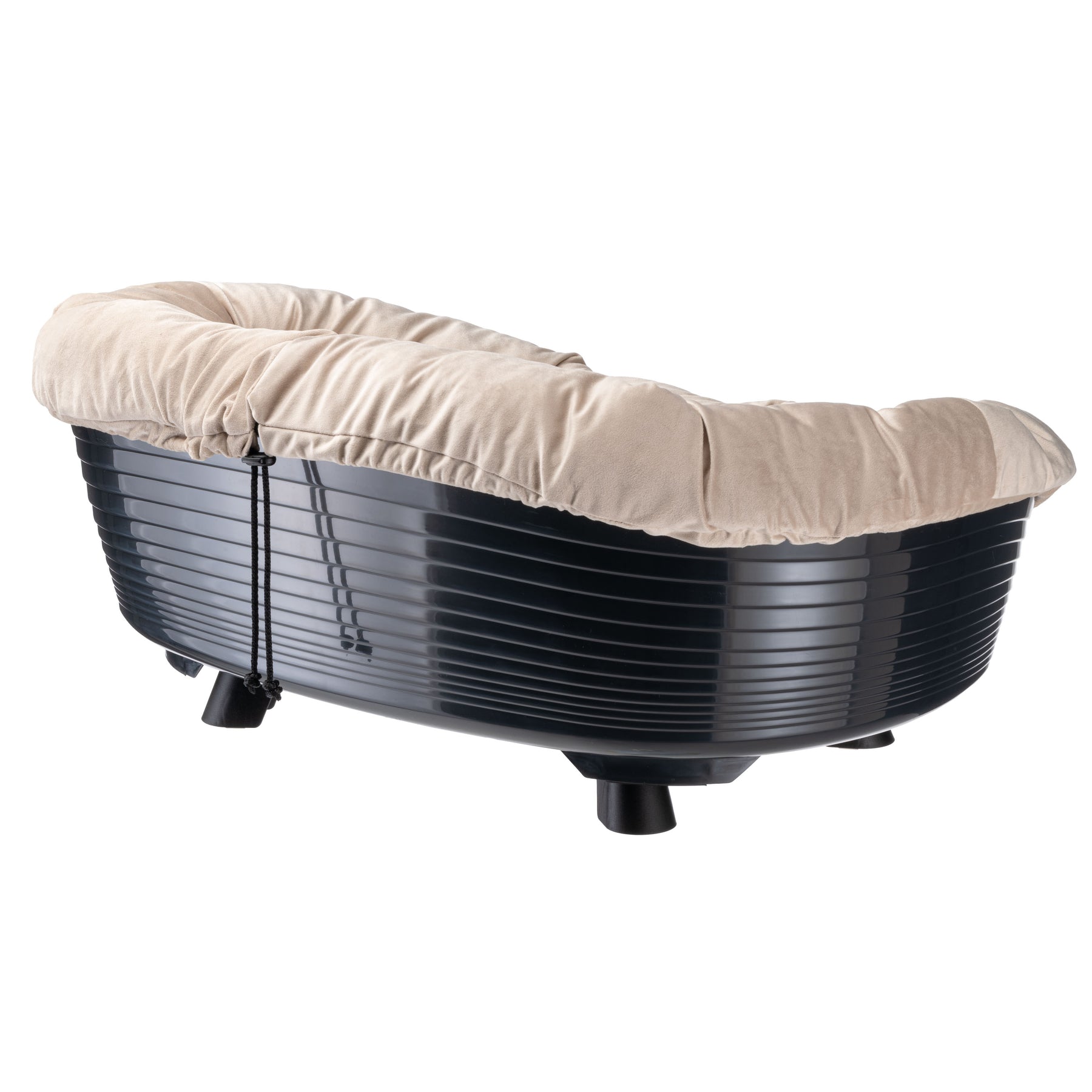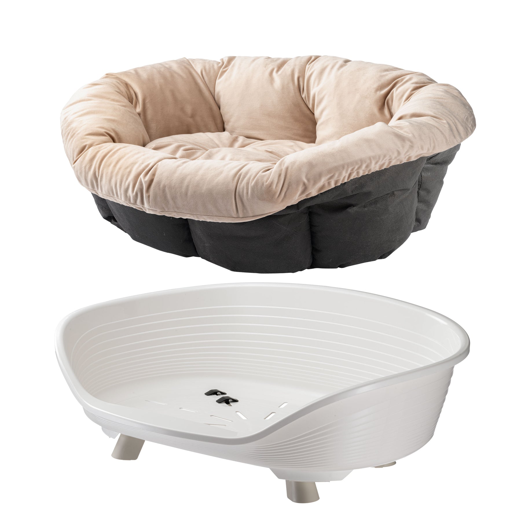 Sofà Throne è una confortevole cuccia per cani e gatti composta da una base rigida in resina termoplastica completa di rivestimento in soffice velluto. La base presenta bordi alti per supporto e protezione e un'entrata ribassata per facilitare l'accesso. Perfetto per il relax quotidiano, il lettino Sofà Throne è caratterizzato inoltre da un pratico poggiamento per l'animale e un fondo perforato per un'adeguata aerazione. Il rivestimento in elegante velluto è rimovibile e comodamente lavabile a 30°, offre comfort supremo e un'igiene impeccabile. Con piedini antiscivolo removibili, la cesta rimane stabile e rialzata da terra, assicurando un buon isolamento dal pavimento.