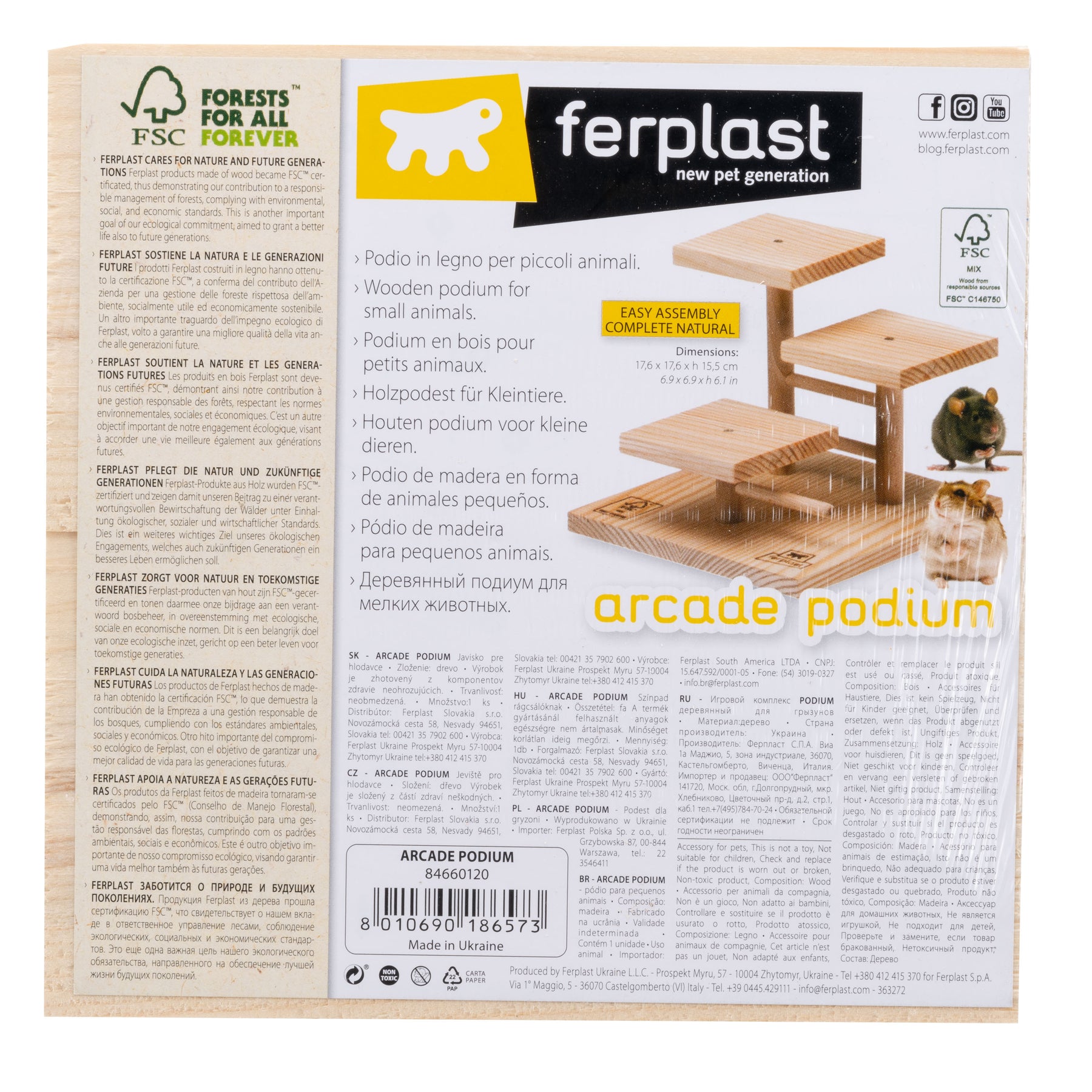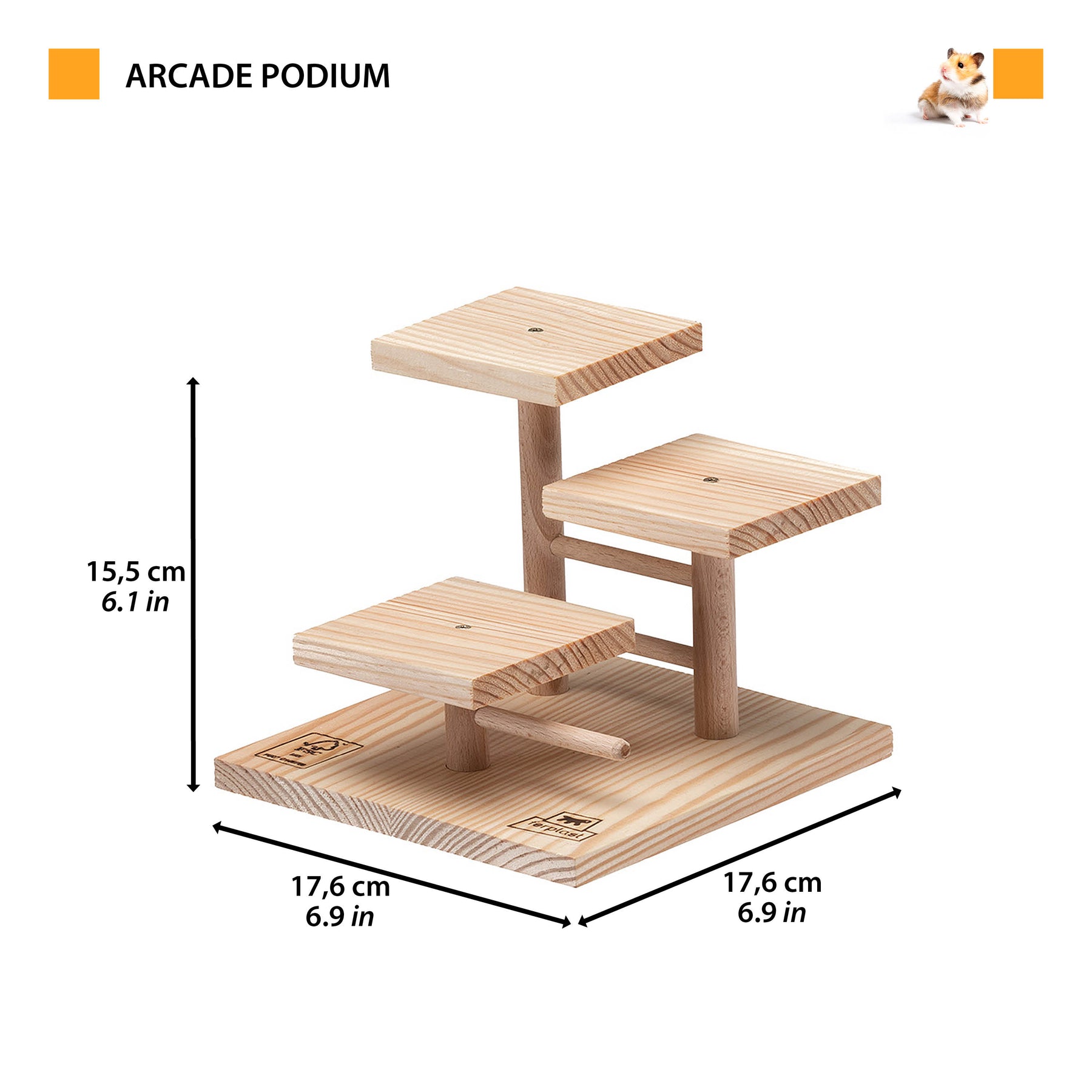Arcade Podium, adatto a criceti e topolini, è un originale piedistallo in legno a 3 livelli dotato di piattaforme, utile per incentivare l'esercizio e il movimento. Facile da assemblare, viene fornito in kit di montaggio.