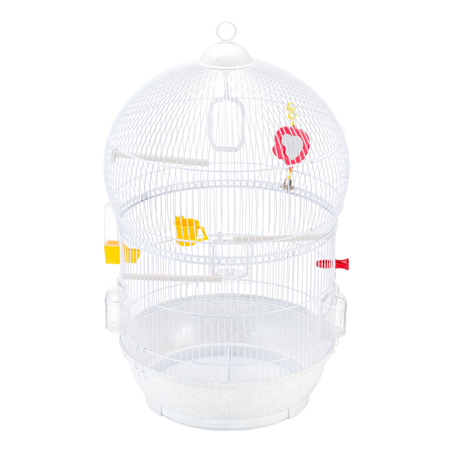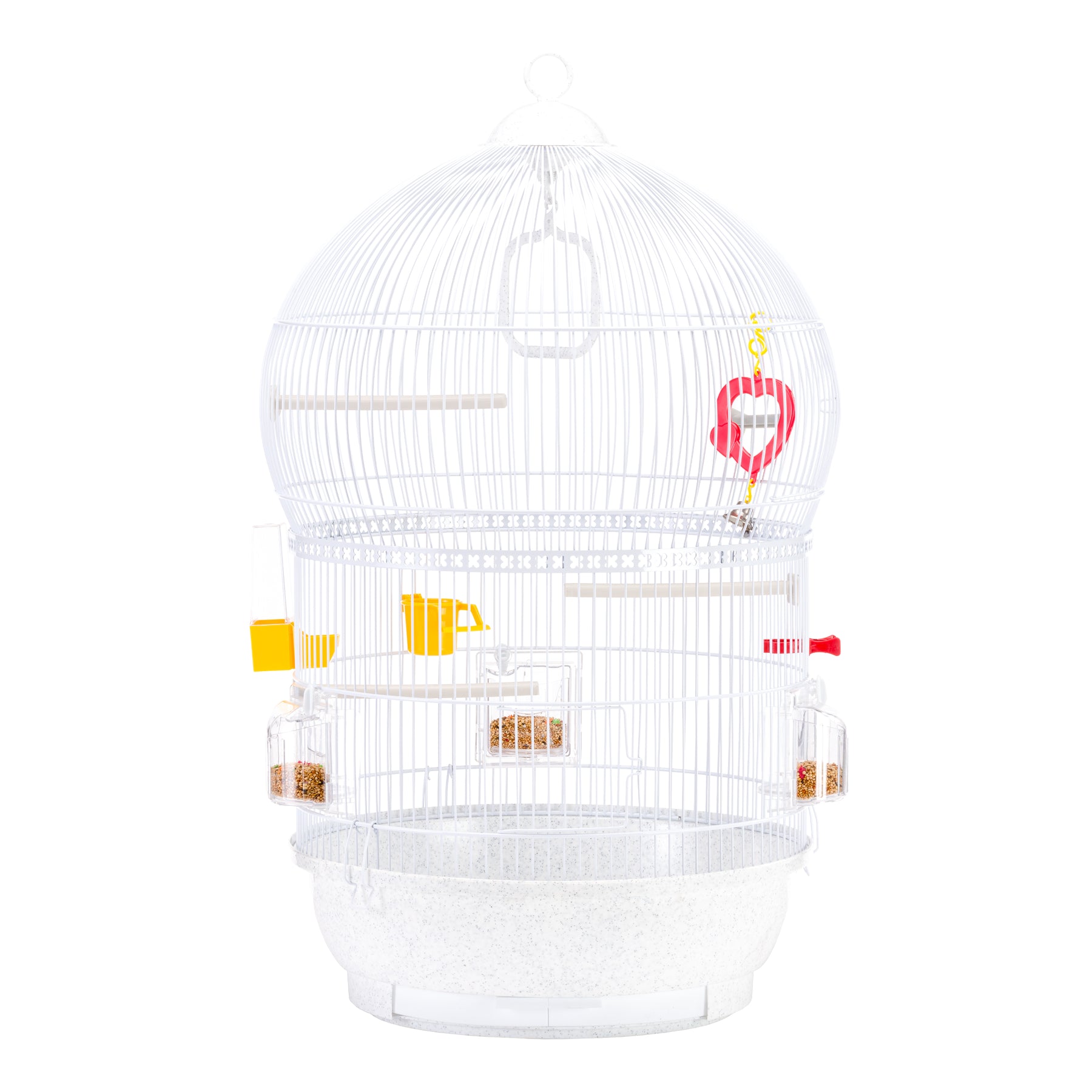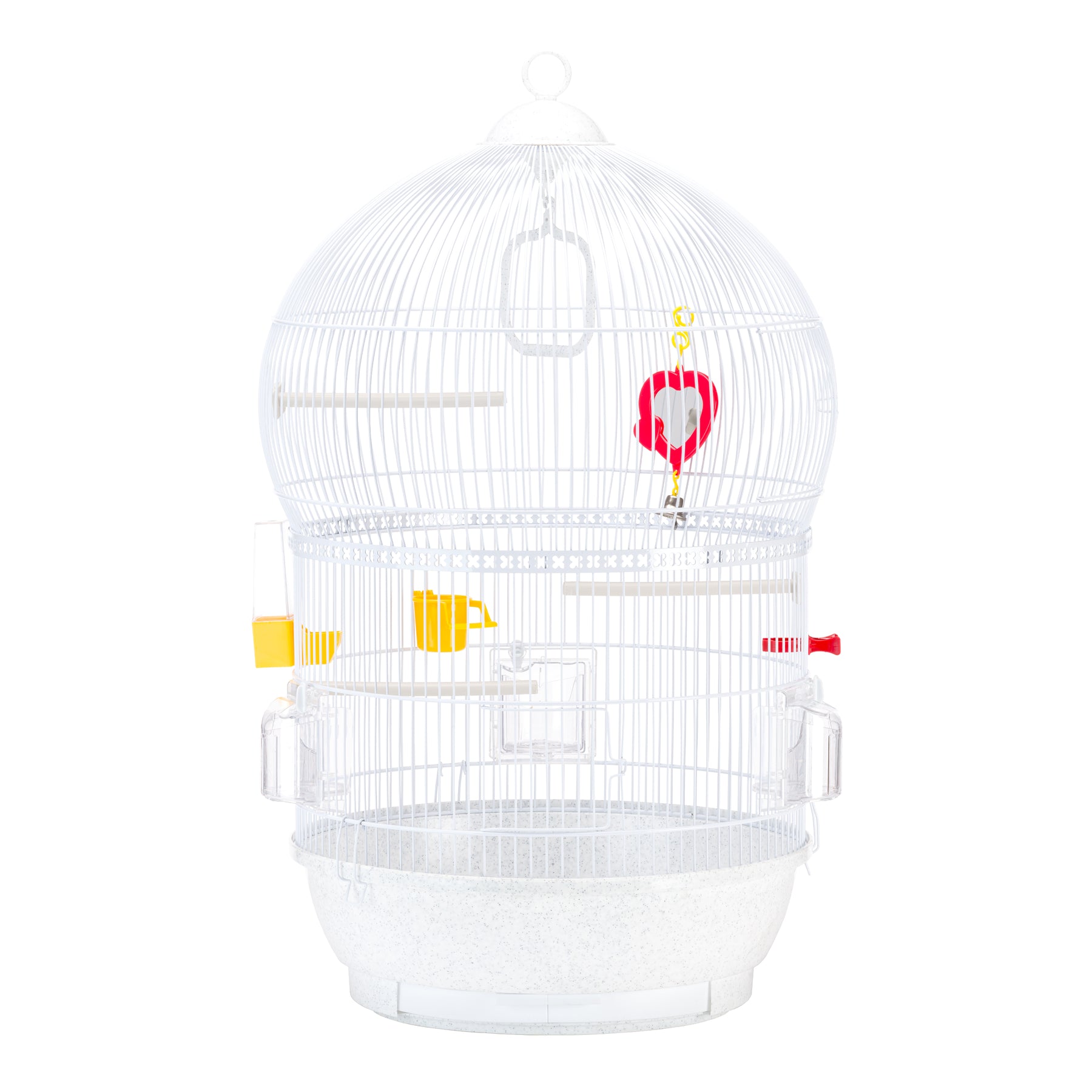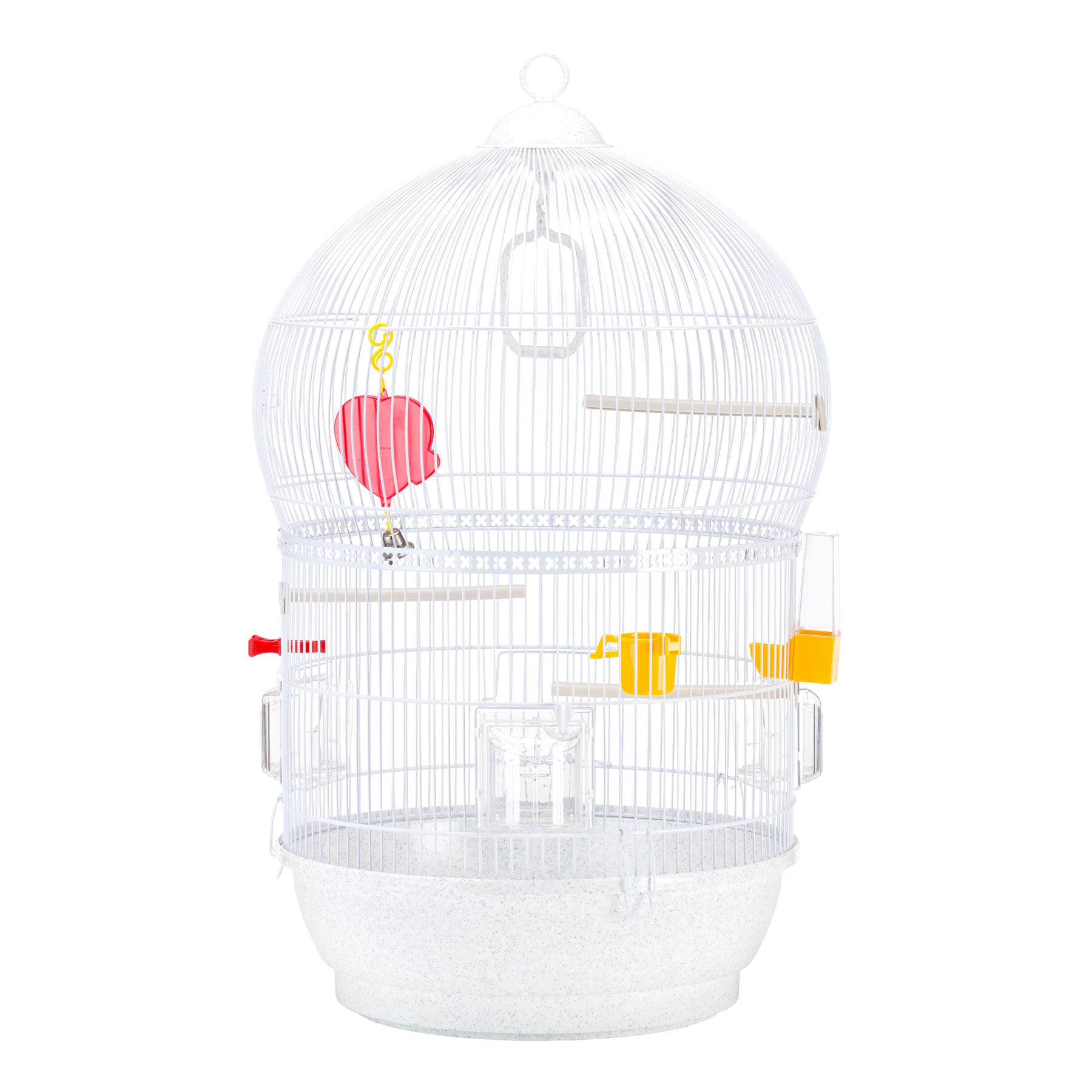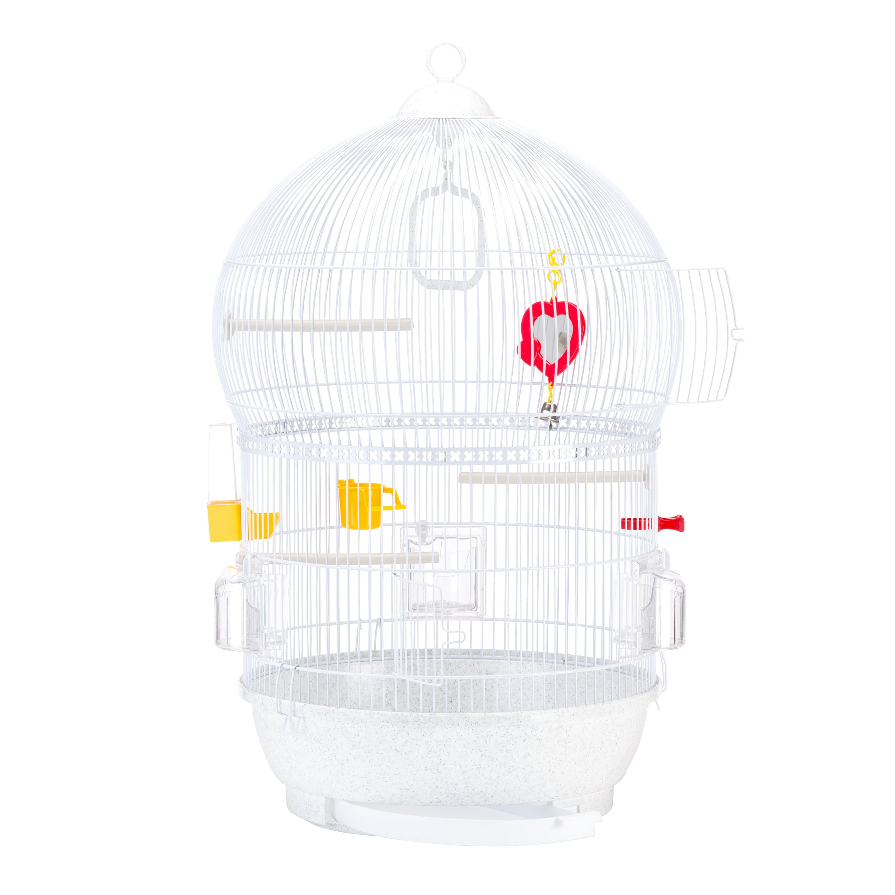 Richiama nella forma gli edifici orientali! Bali è una gabbia rotonda di dimensioni medie per canarini, esotici e piccoli uccelli. Realizzata in rete metallica verniciata, è dotata di fondo in plastica con cassetti estraibili che renderanno agevoli le operazioni di pulizia quotidiana.