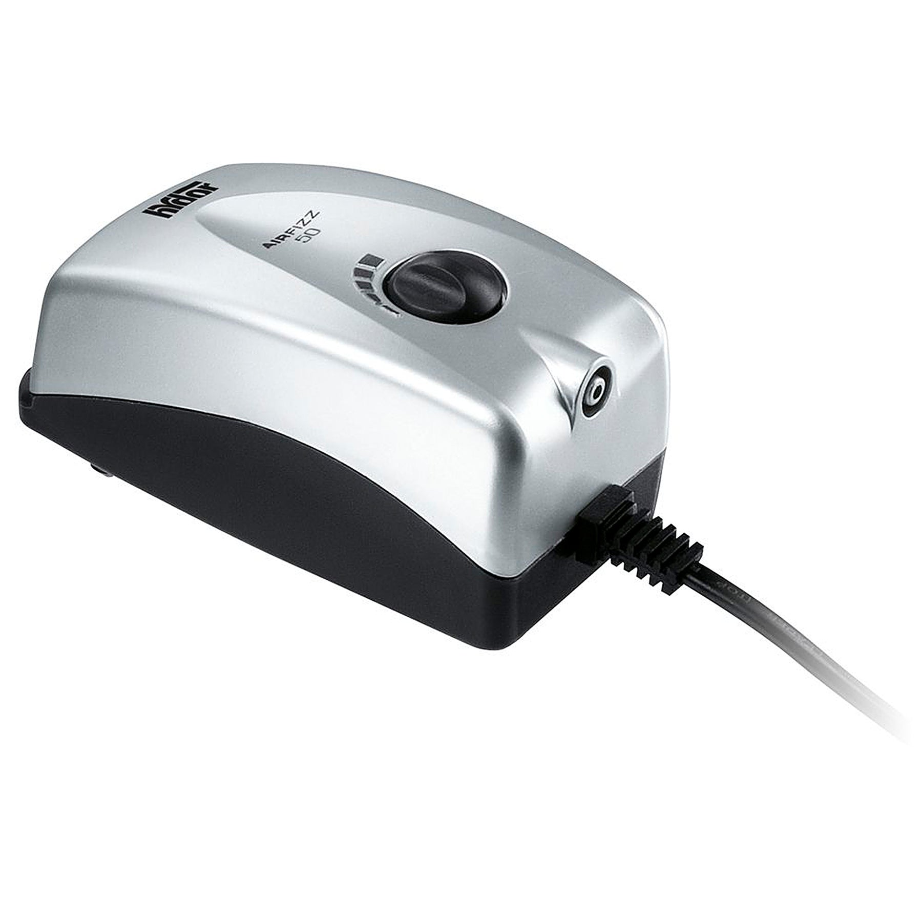 Disponibili in quattro modelli, diversi per portata d'acqua (da 50 a 200l/h) e potenza (da 2 a 5 W), gli aeratori per acquari Airfizz hanno uno o due ugelli di uscita indipendenti, con portata regolabile: un ugello nei modelli più piccoli Airfizz 50 e 100, due ugelli nei modelli Airfizz 200 e 400. Utili piedini in gomma alla base sono stati studiati per ridurre le vibrazioni.