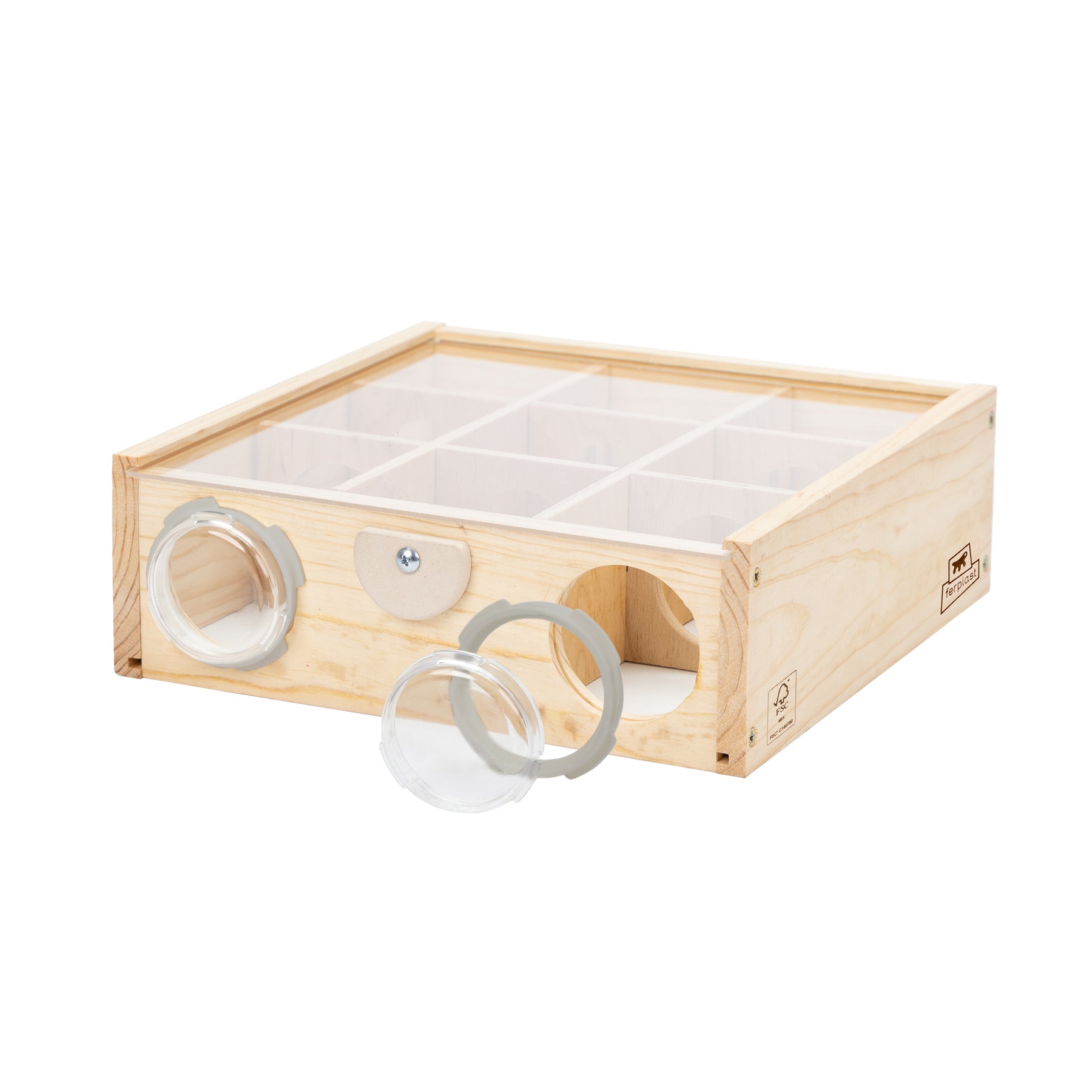 Gioco in legno per criceti FSC™, labirinto modulare che stimola movimento, gioco mentale e foraging