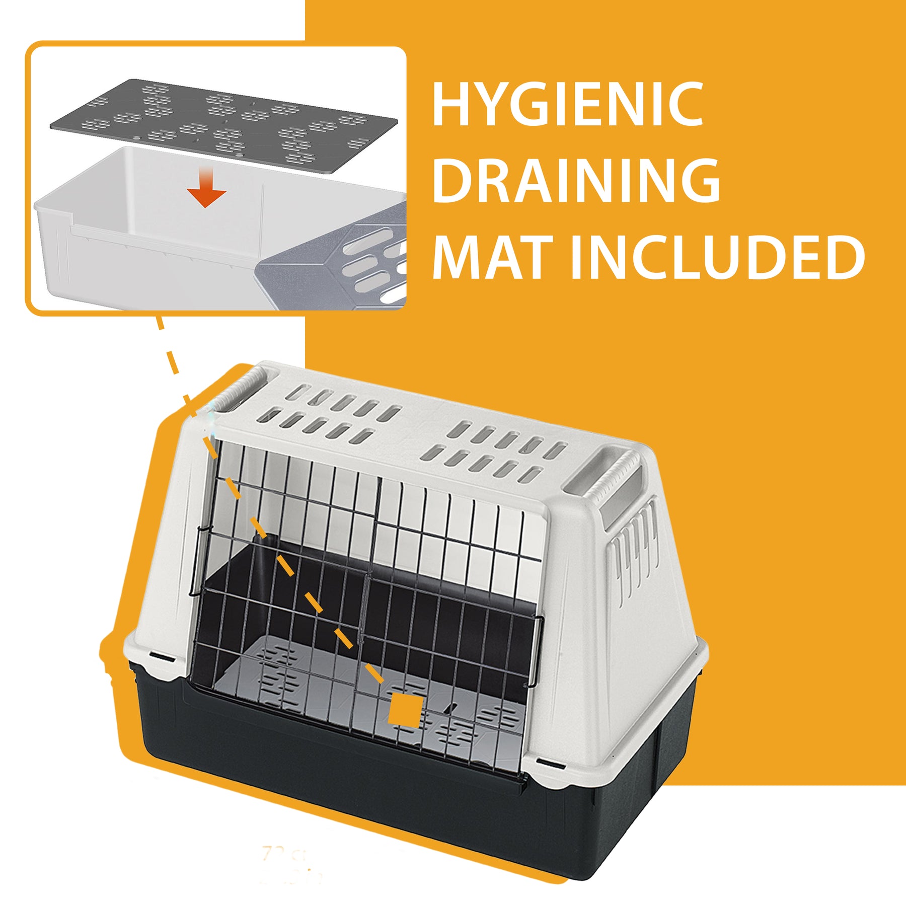 Tutti i modelli di box auto hanno una solida chiusura di sicurezza e una porta scorrevole bidirezionale facile da aprire. Le ampie fessure di ventilazione mantengono la gabbia ben areata, mentre il tappetino igienico drenante adagiato sul fondo assicura un ambiente sempre asciutto. Le pratiche maniglie laterali consentono un agevole trasporto e posizionamento in auto.
