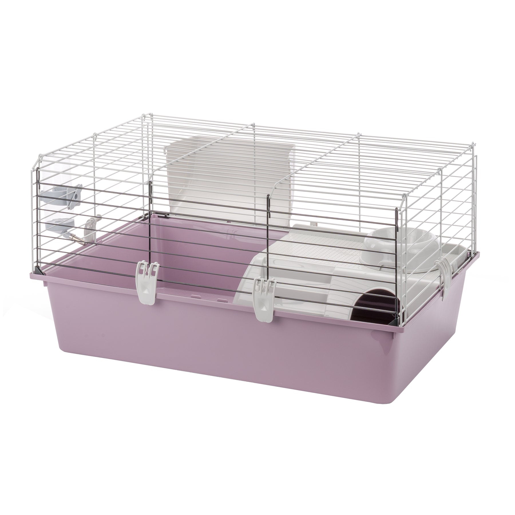 Guinea 70 è una gabbia per porcellini d'India dotata di uno speciale sistema di apertura e chiusura, garanzia di maggiore sicurezza per i piccoli ospiti. Lo sportello frontale è provvisto infatti di apposite clip in plastica che consentono di bloccarlo al fondo con estrema facilità ed è inoltre completamente apribile per facilitare le operazioni di pulizia.
