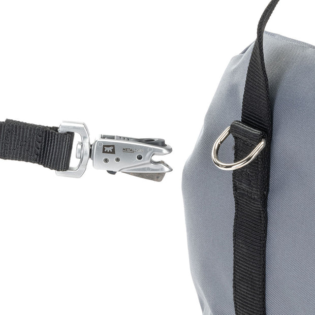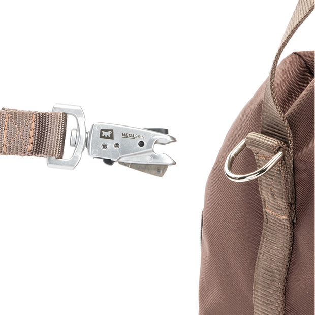 Cruiser è dotato infatti di una fettuccia di fissaggio robusta che permette un ancoraggio sicuro al sedile dell'automobile, mentre il moschettone magnetico assicura che il cane rimanga al sicuro all'interno del trasportino durante tutto il tragitto.