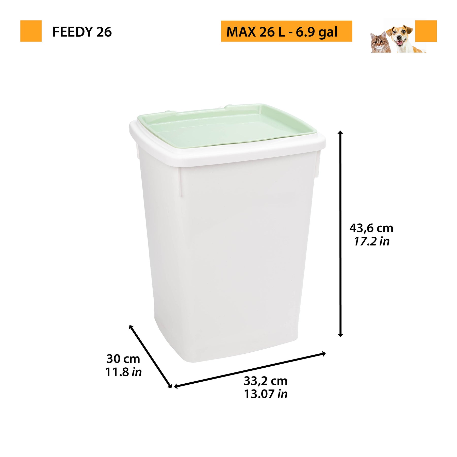 Disponibile in tre diverse capacità, Feedy 13, 26 e 39 che contengono rispettivamente 5, 10 e 15 kg di cibo per cani. Con Feedy potrete fare scorta di cibo e stare tranquilli per un lungo periodo.