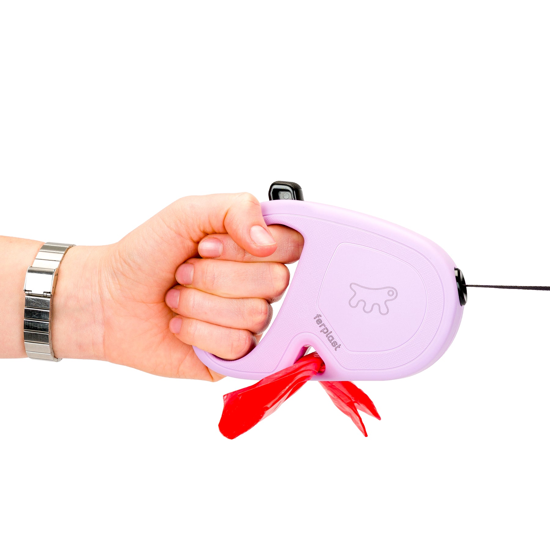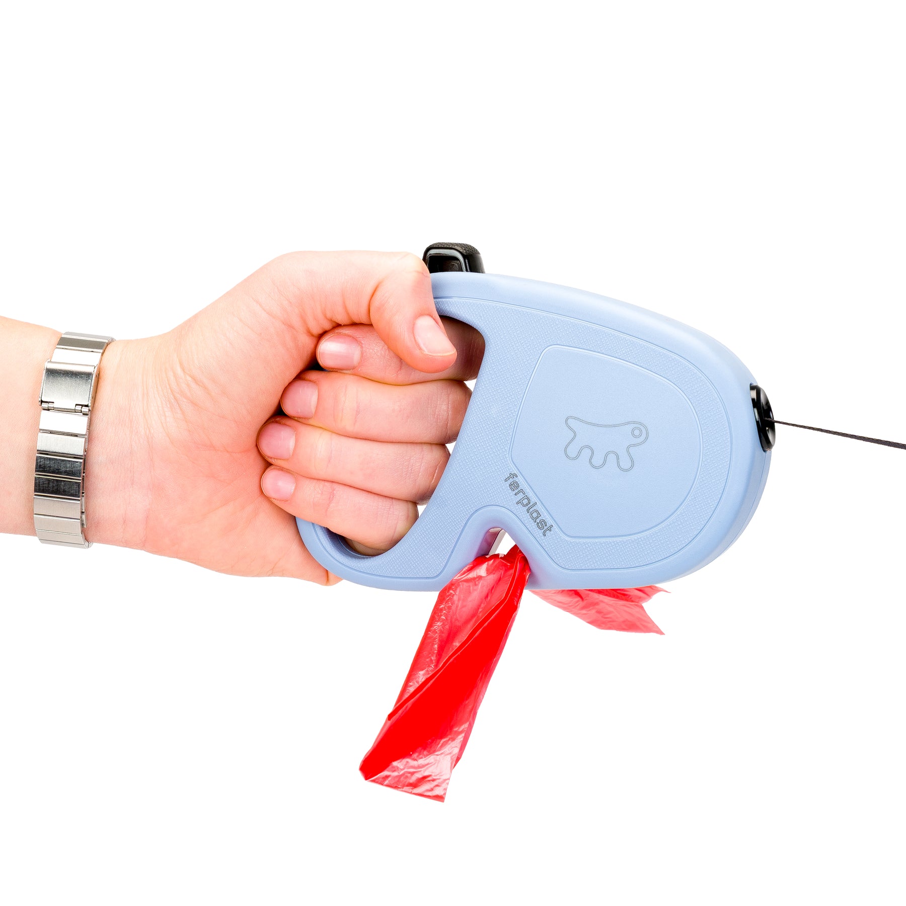 Il guinzaglio allungabile Flippy One è compatto e leggero, con un'impugnatura ergonomica e confortevole. Il pratico foro per agganciare il porta sacchetti igienici non sporge ed è integrato nel guscio, così da non arrecare nessun fastidio e consentendo di portare comodamente con sé questi indispensabili accessori per la passeggiata.